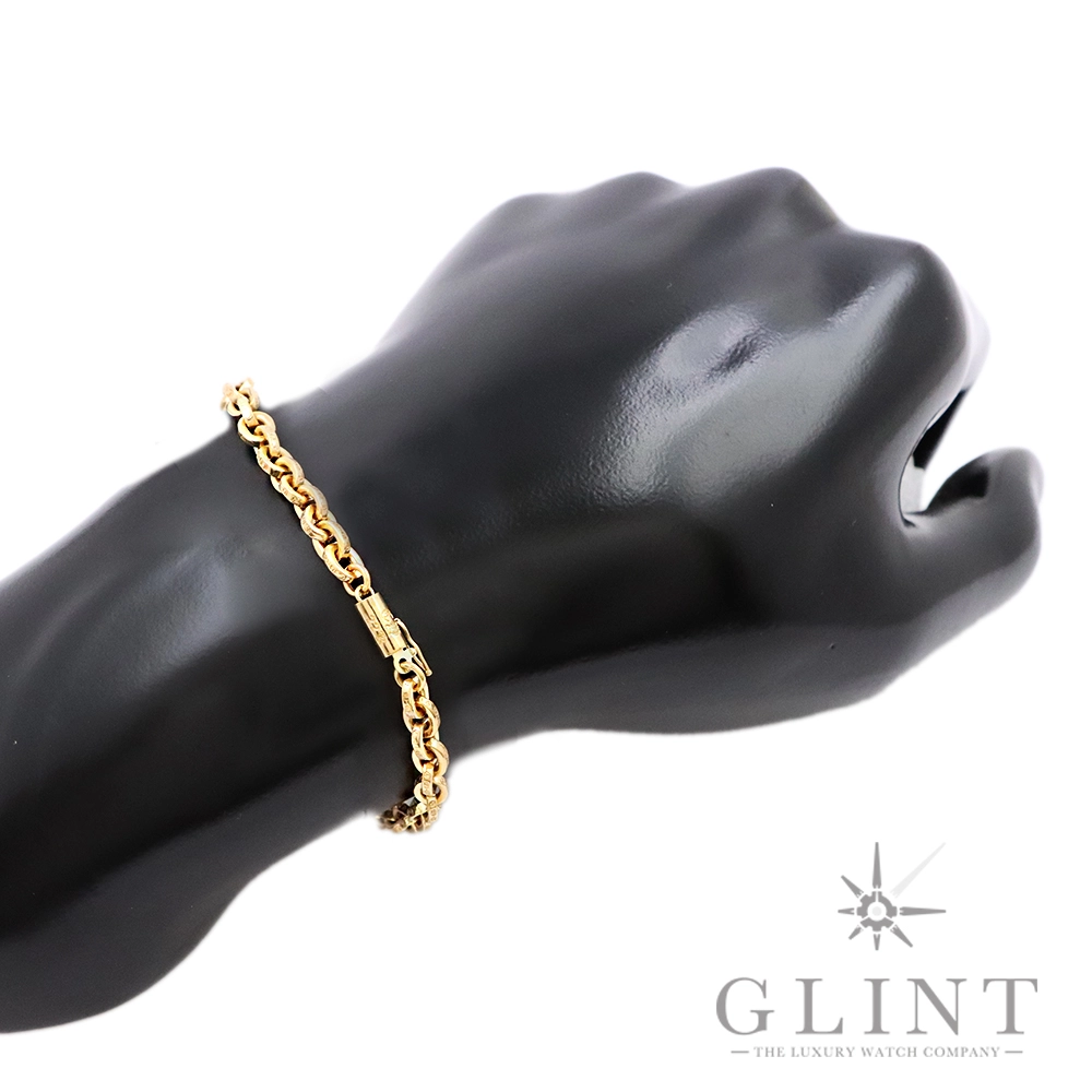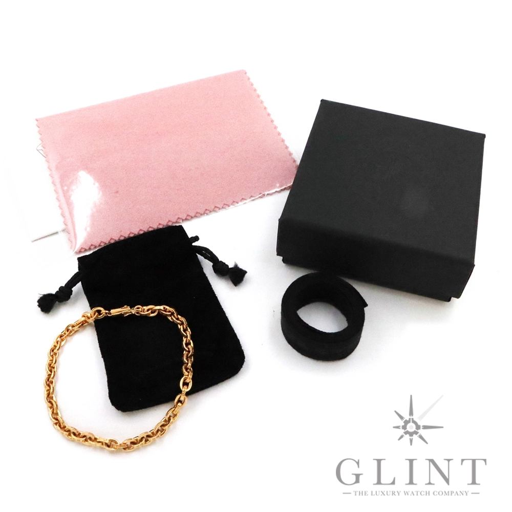 こちらはクロムハーツを代表する定番ジュエリー「ペーパーチェーン」の22Kゴールドモデル。ブランドの世界観を象徴する無骨さと、22Kならではの圧倒的な存在感と重厚感を兼ね備えた一本です。一つ一つ丁寧に作り込まれたリンクは、手元に自然に馴染みながらも、動くたびに上質な輝きを放ちます。シンプルでありながら圧倒的なオーラを持ち、単体使いはもちろん、他のクロムハーツジュエリーとの重ね付けにも最適です。8インチサイズは多くの方にフィットしやすく、男女問わず着用可能。流通数が限られる22Kモデルは資産価値も高く、コレクションとしてもおすすめの逸品です。