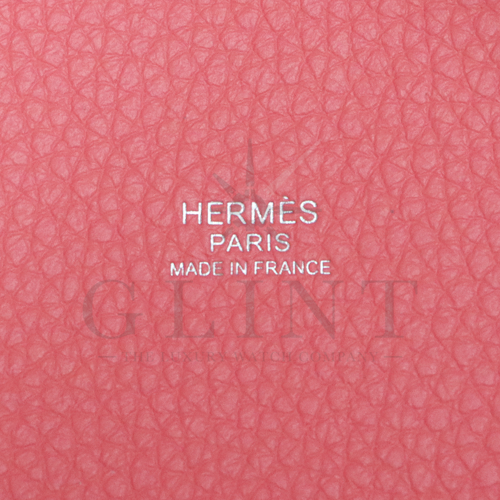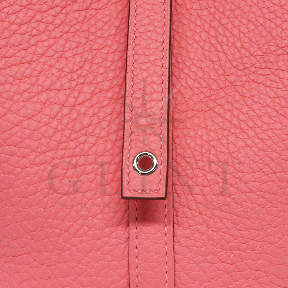 エルメス(Hermès)で最も使用されている素材のトリヨンクレマンス。トリヨンクレマンスは雌仔牛の皮であり、フィットするような柔らかさが非常に特徴的で、その柔らかさに関してはエルメスの中でも群を抜いて柔らかい素材です。エルメスのデイリーユースバッグとして定番になったエルメスのアイコンバッグピコタン。そのピコタンの後継バッグとして2008年よりリリースされたピコタンロックは丸みを帯びたフォルムとカデナがポイント。カジュアルにもエレガントな装いにもコーディネイトしやすいのもピコタンロックの特徴です。使い勝手の良いPMサイズは大変人気となります。