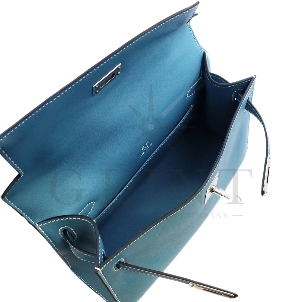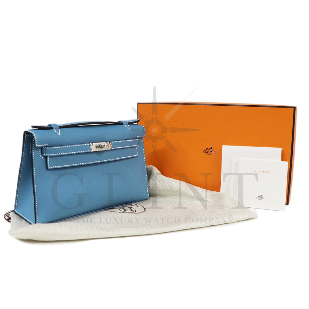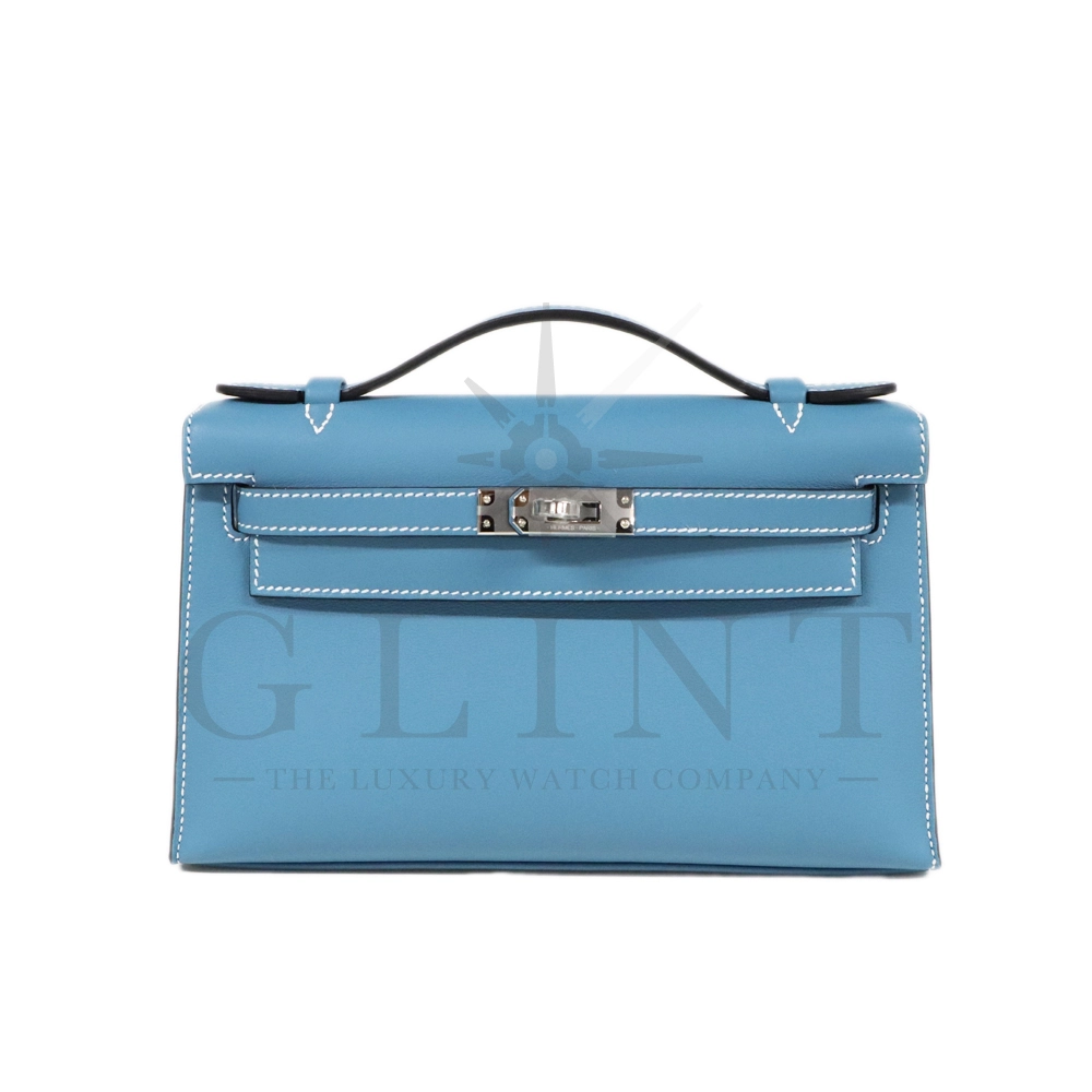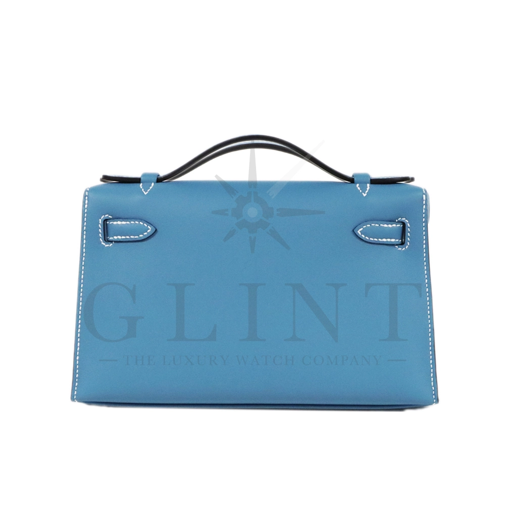 Hermès Pochette Kelly Mini Swift Leather Blue Jean