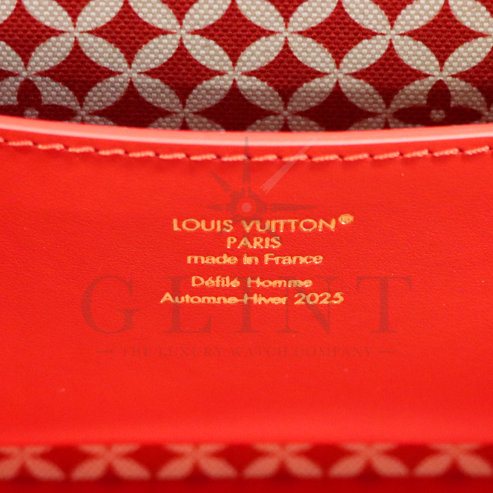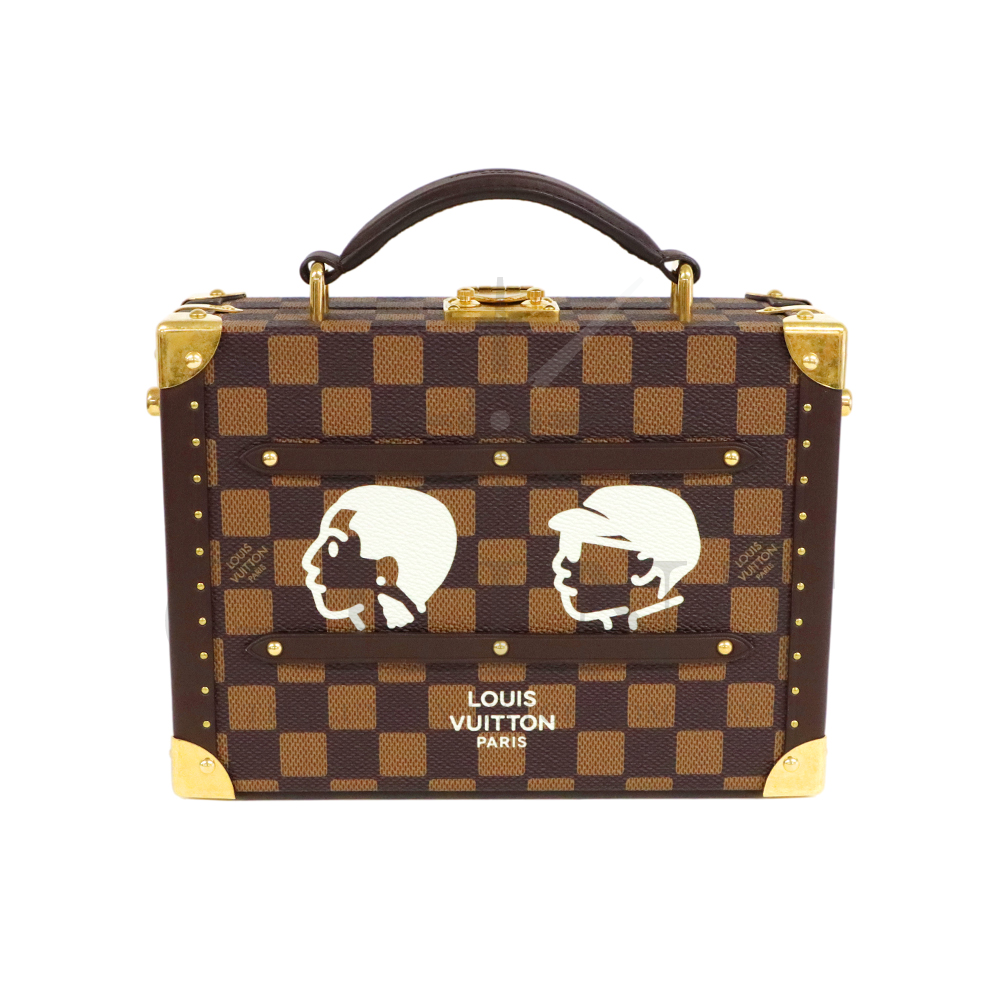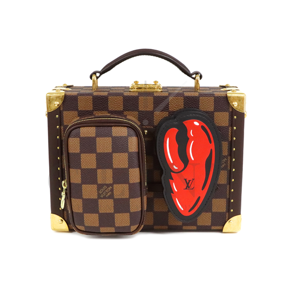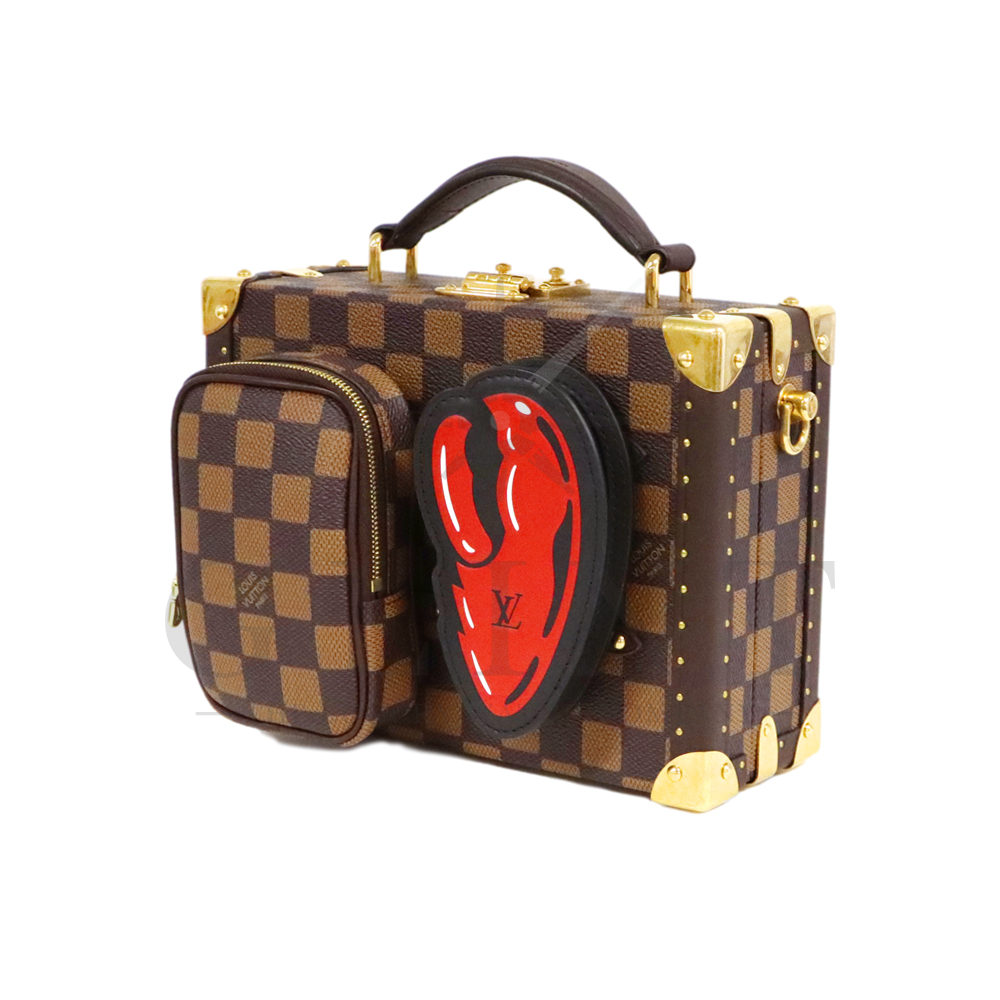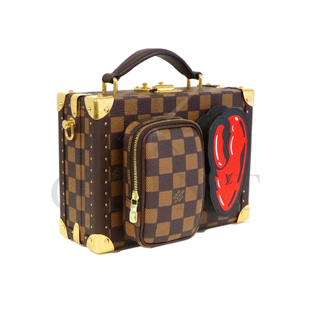こちらは「サワガニ・トランク」です。ファレル・ウィリアムスと日本人デザイナー NIGO®の長年にわたるコラボレーションを讃える、ダミエ・フレンドシップ キャンバスの「サワガニ・トランク ダミエ フレンドシップ」。ストラップで持ち運べるこのトランクは、片面には遊び心溢れる複数のポーチを、もう片面にはファレルとNIGO®の横顔を配した特徴的なデザイン。内装には、NIGO®が手掛けた日本の伝統的な七宝文様の織物とモノグラム・フラワーを組み合わせたライニングを施しています。ファレルが持つ鮮やかな色彩感覚と、NIGO®が持つ一目でそれとわかる大胆なアイコンが組み合わり、ストリートカルチャーをラグジュアリーへと昇華させた傑作コレクションです。