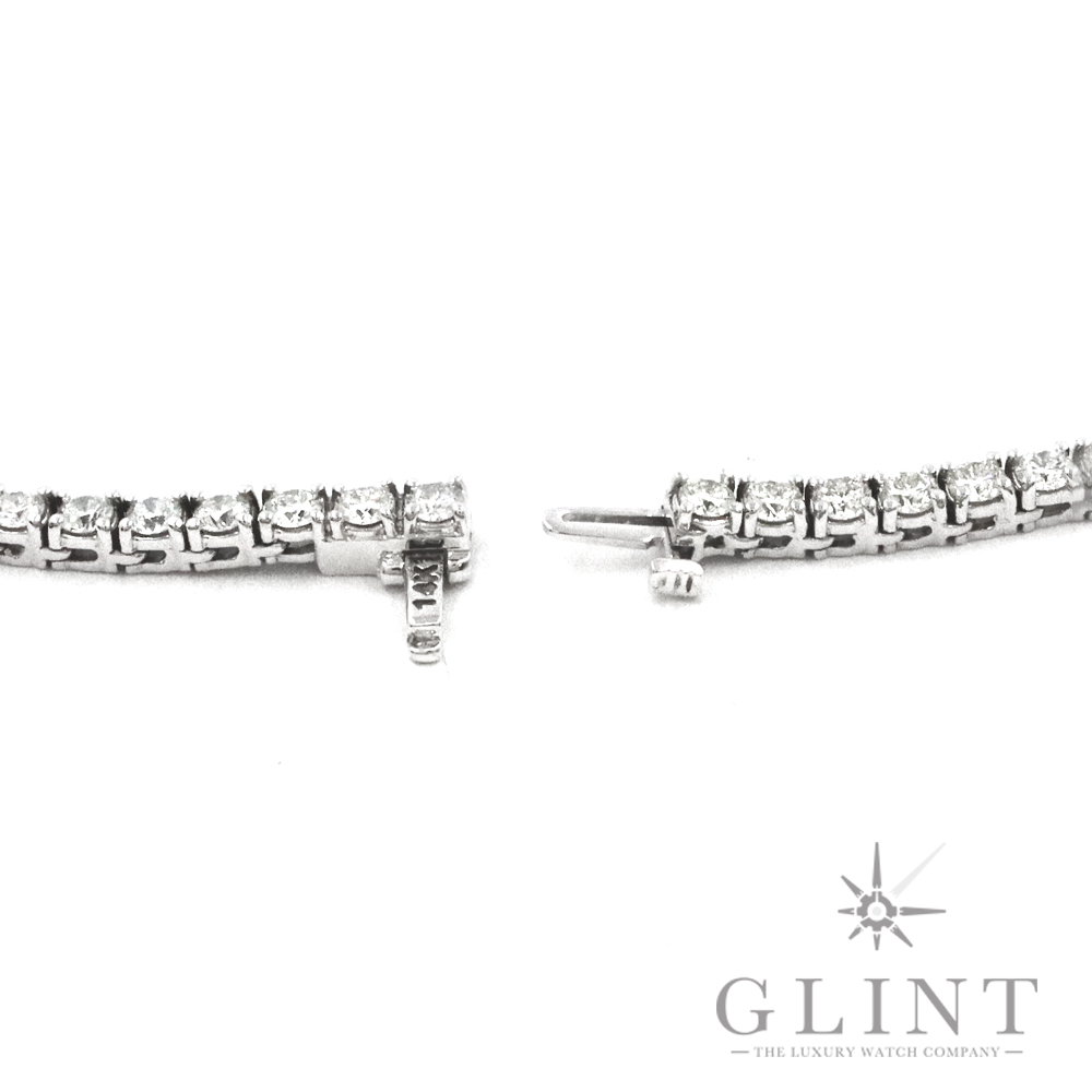14Kホワイトゴールドに天然ダイヤモンドを贅沢にあしらったテニスネックレス。一石一石丁寧にセッティングされたダイヤモンドが、純粋で洗練された輝きを放ち、首元を上品に彩ります。ホワイトゴールドの落ち着いた光沢がダイヤモンドの透明感を引き立て、フォーマルな装いはもちろん、日常のスタイルにも自然に馴染むデザイン。時代やトレンドに左右されない普遍的な美しさを持ち、永くご愛用いただけるネックレスです。