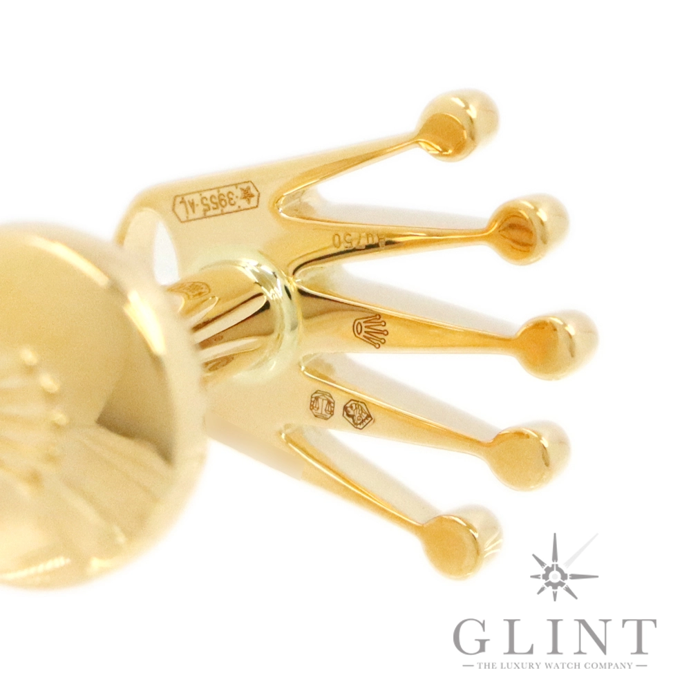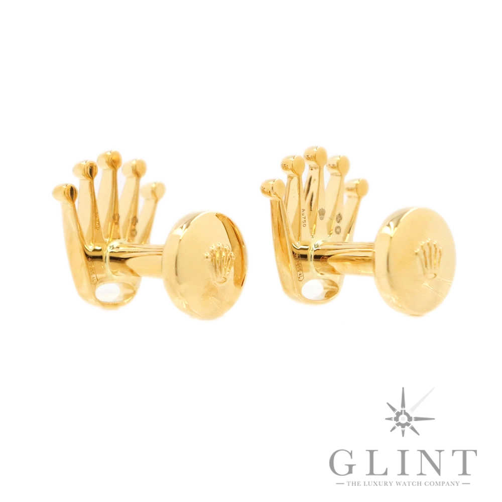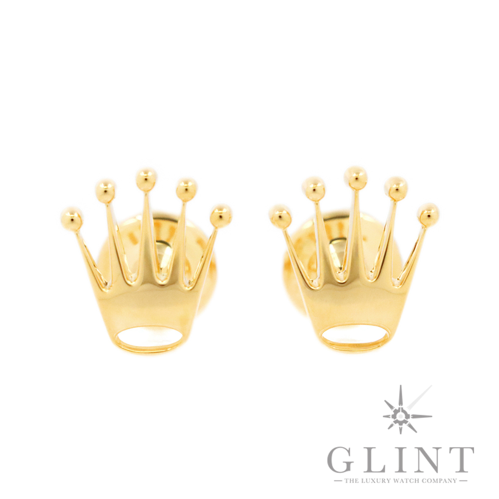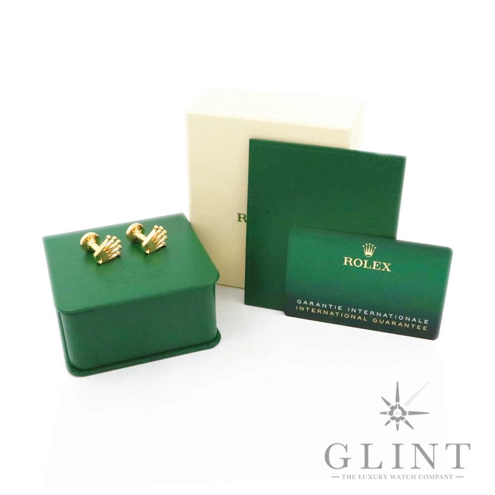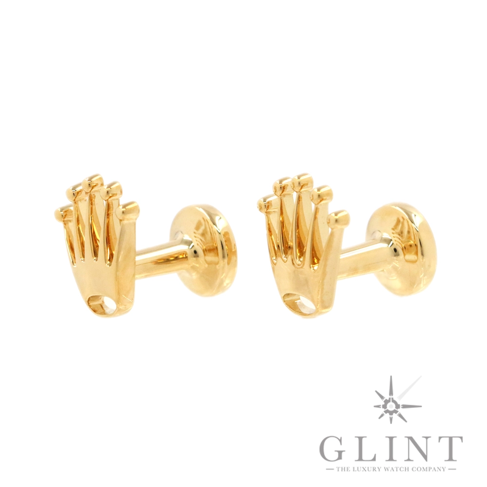 こちらはロレックス クラウン カフリンクスです。素材に18Kイエローゴールドを使用した豪華なカフス。象徴的なロレックスのクラウン(王冠)をかたどっています。お持ちのロレックスと合わせてお使いいただくのはもちろん、カフス単体でもお楽しみいただけるでしょう。プレゼント用にもぴったりなアイテムです。