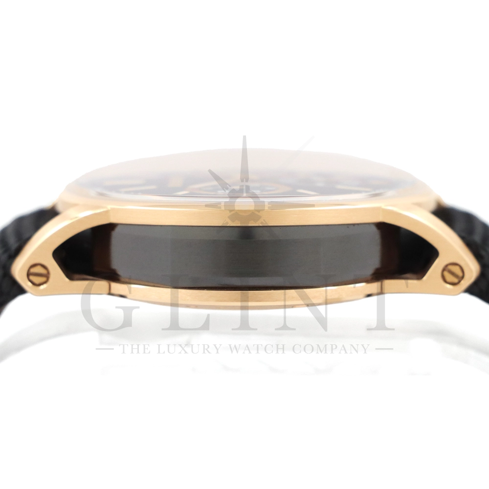 ストラップ:ブラックラバー加工ストラップ、18Kピンクゴールドのピンバックル 18Kピンクゴールドピンバックル