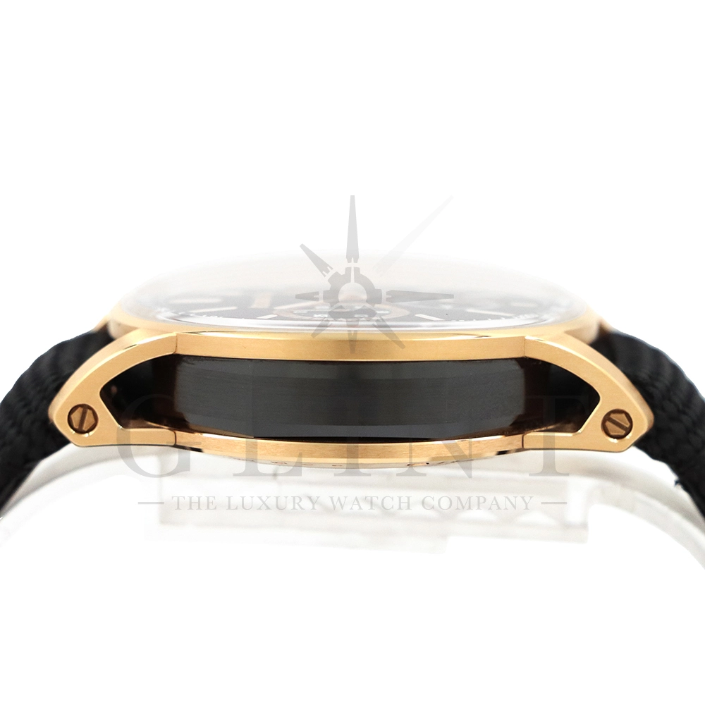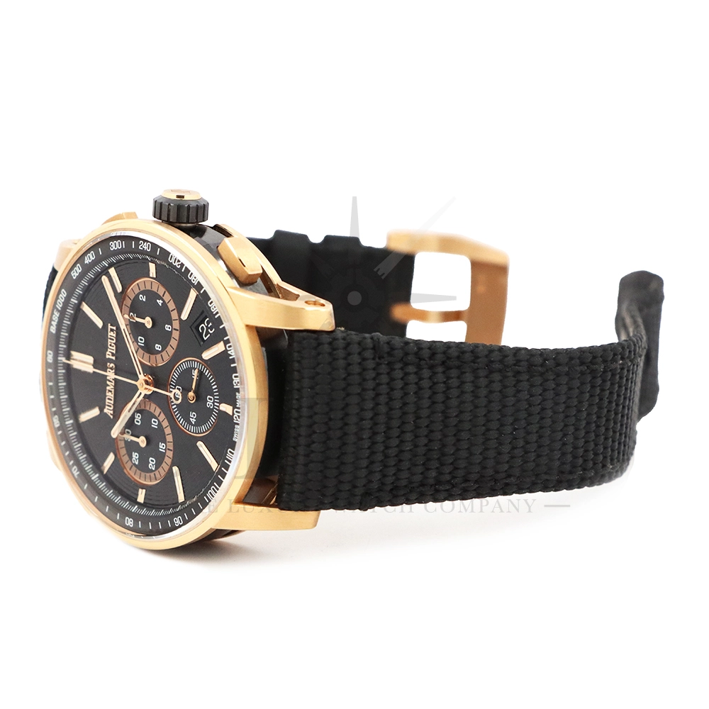 ストラップ:ブラックラバー加工ストラップ、18Kピンクゴールドのピンバックル 18Kピンクゴールドピンバックル