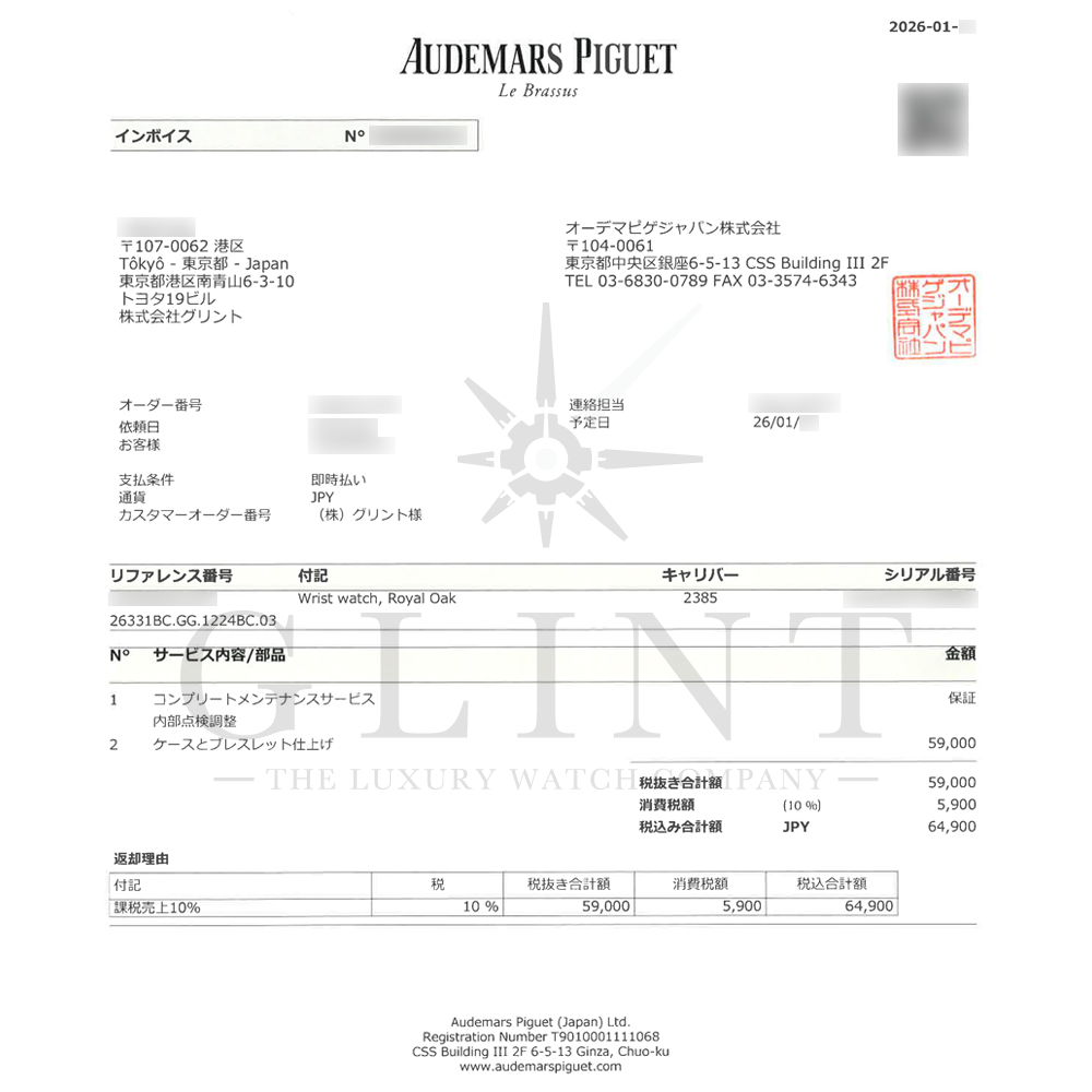 2026年1月オーデマピゲにてコンプリートサービス、外装仕上げ済みの為、最高のコンディションとなります。