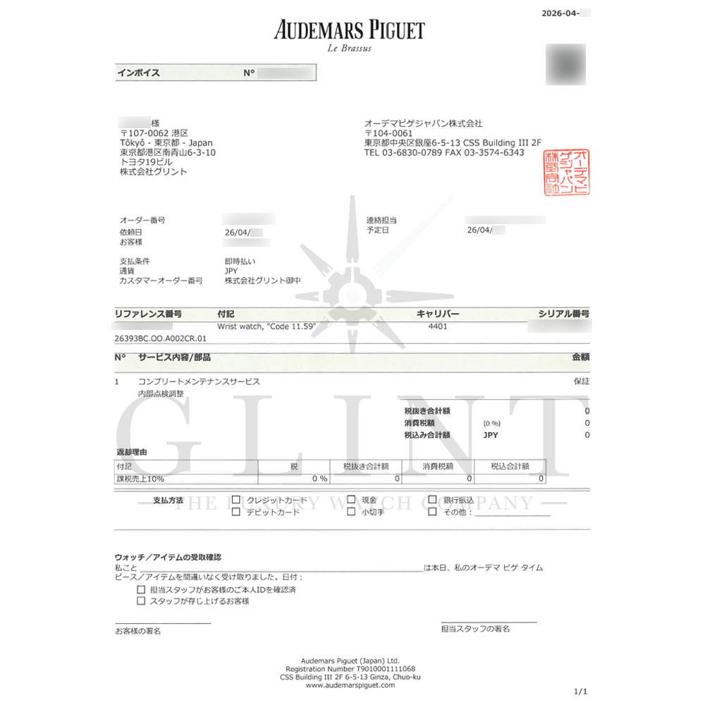 付属品:専用ケース ギャランティカード(2022年3月) 取扱説明書 オーデマピゲ修理明細書