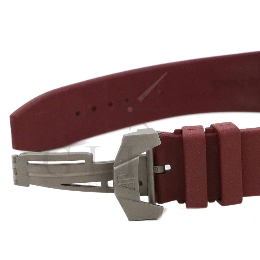 ストラップ:グテキスチャー バーガンディー ラバーストラップ、サンドブラスト仕上げチタンAPフォールディングバックル