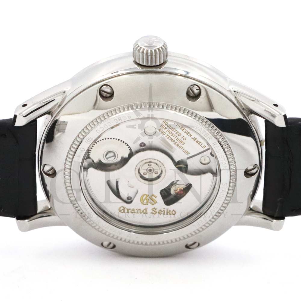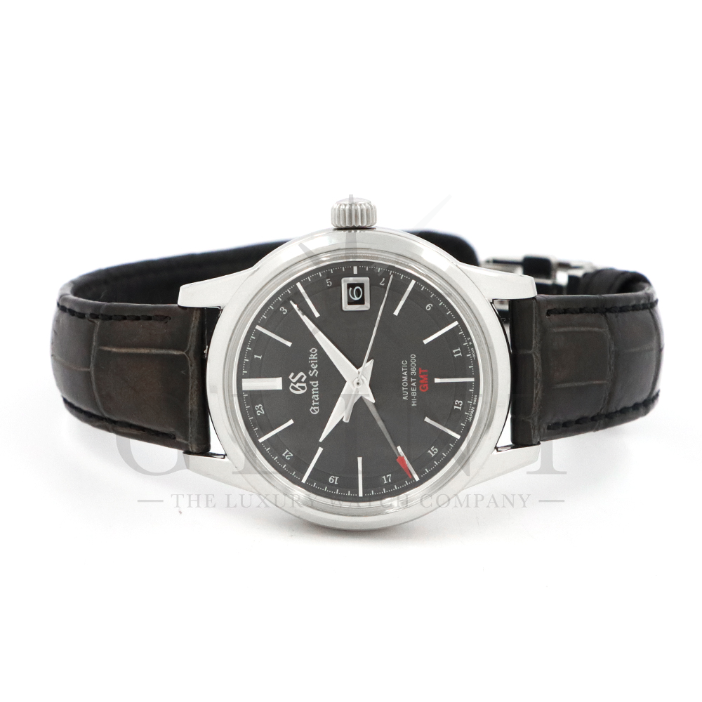 こちらはグランドセイコー Grand Seiko Elegance Collection SBGJ219 マスターショップ限定モデルです。外乱に強く携帯時の高精度を実現した自動巻メカニカルハイビート36000ムーブメントの性能はそのままに、GMT機能を付加したキャリバー9S86搭載モデルです。クラシックなケースデザインに調和する、レトロモダンな雰囲気のダイヤル外周部には、10振動モデルならではの1/5秒目盛が刻まれており、緻密でありながらすっきりとしたデザインに仕上がっています。細身で長いインデックスが、スマートで洗練された表情をもたらすでしょう。アクティブな場面にもフォーマルな装いにもマッチする、活躍シーンの多い一本です。