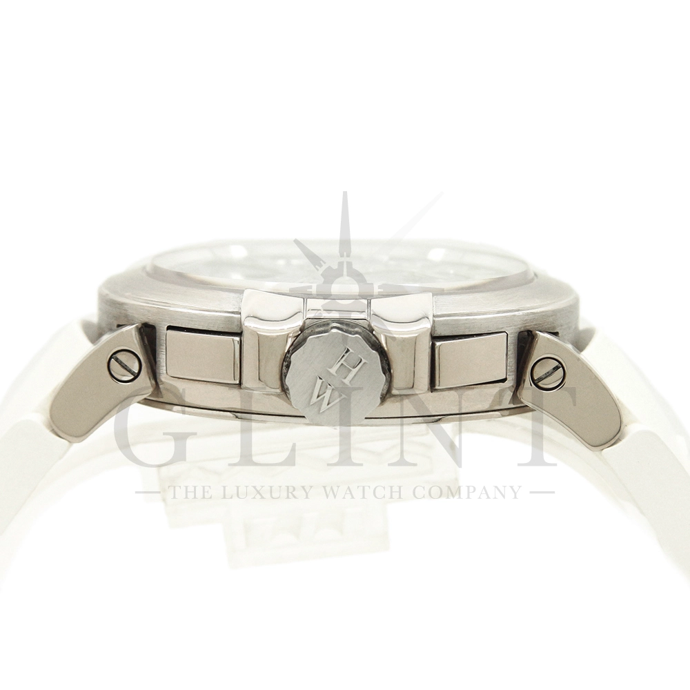 独創的なレトログラード機構で見た目も美しい文字盤とケース素材に18Kホワイトゴールドを贅沢に使用した上品な高級時計。ケースバックから覗く時計の機構をいつまでも眺めたくなるそんな一品です。ラグジュアリーなシーンから普段使いまで腕元をお洒落にそして上品に演出してくれます。