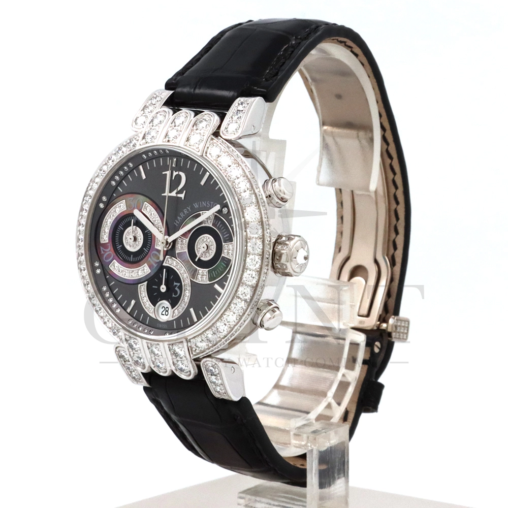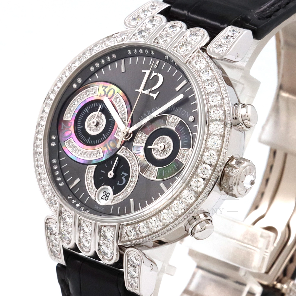 セッティングされているダイヤモンドは全てハリー・ウィンストン純正ダイヤモンドとなります。ケースサイズ39mmの為、男性の方でも女性の方でもお楽しみいただけるでしょう。店頭での現物確認やその他、詳細画像や動画などご必要の際はお気軽にお問い合わせください。