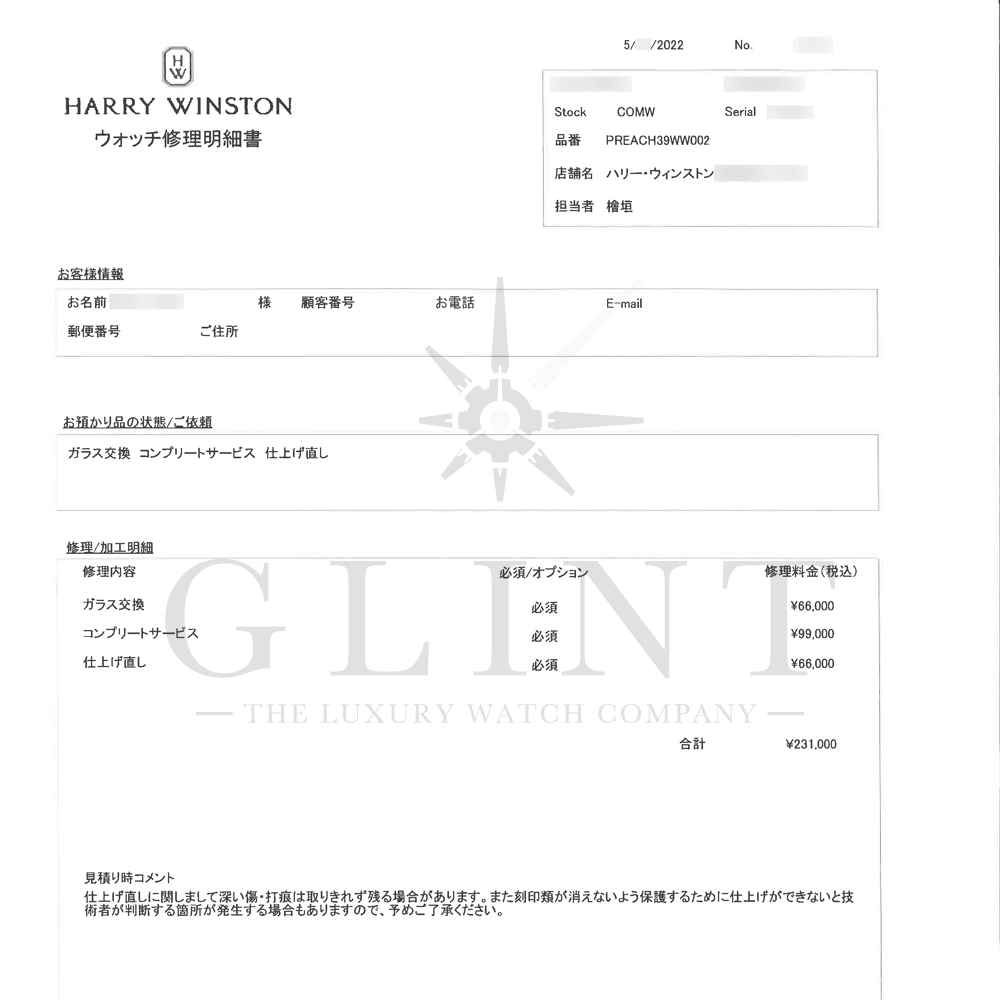 2022年5月ハリーウィンストンにてコンプリートサービス済み。大変状態の素晴らしい極美品となります。セッティングされているダイヤモンドはハリーウィンストン純正ダイヤモンドです。
