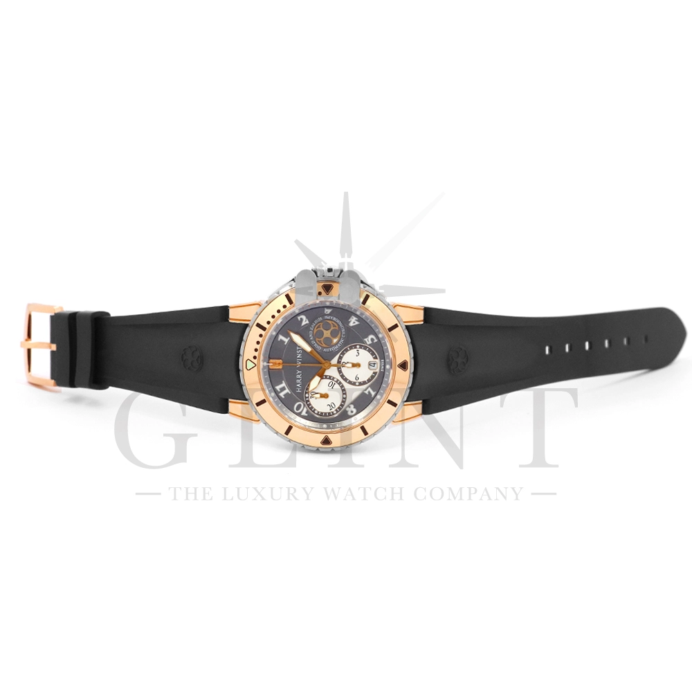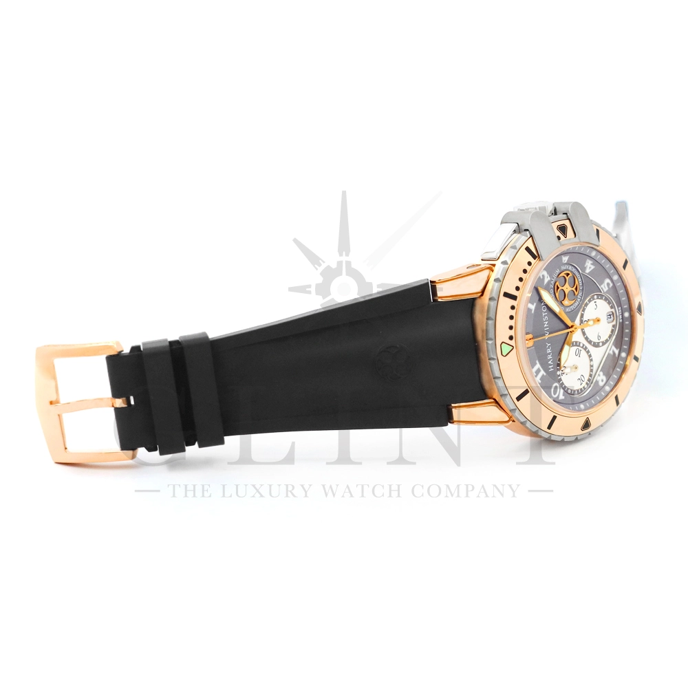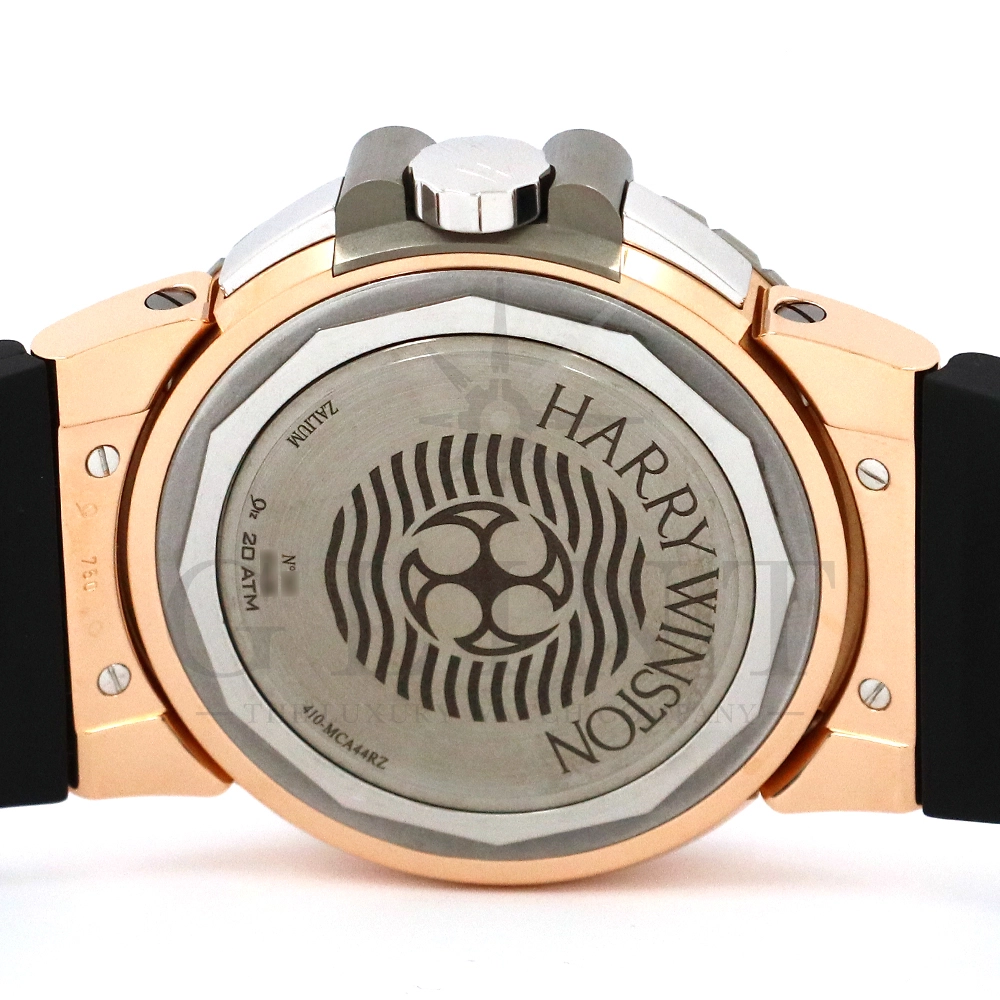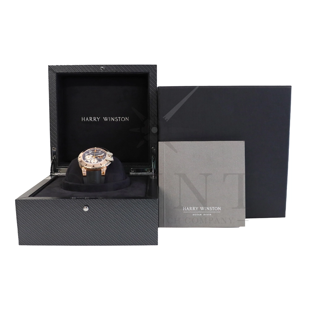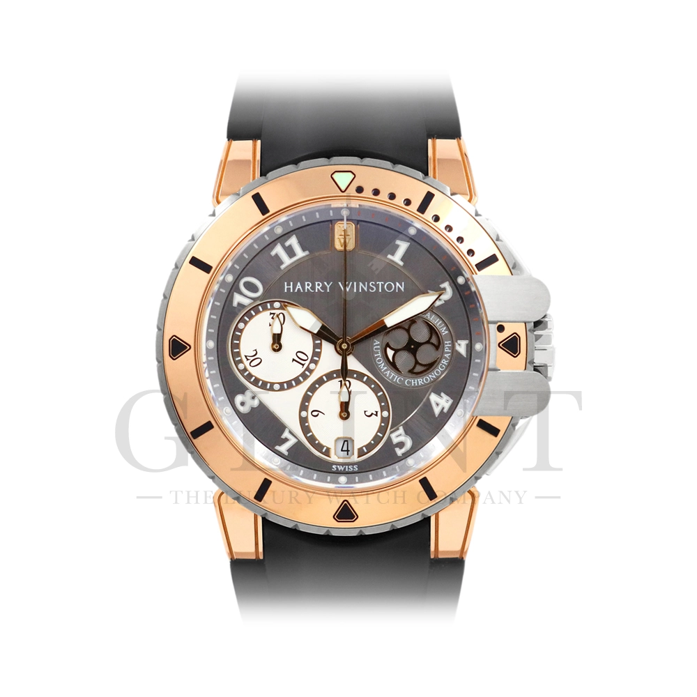 こちらはハリーウィンストン オーシャン ダイバー クロノグラフです。キング・オブ・ダイヤモンドと呼ばれる世界最高峰のジュエリーブランドが手掛けるダイバーズウオッチ。魅力的で斬新なデザインで従来のダイバーズウオッチとは一線を画した雰囲気に仕上がっております。素材には18Kローズゴールドに宇宙航空工学にも使われる超軽量、低アレルギー性で耐久性に極めて優れた特殊合金「ザリウム」を使用。独特の高級感を味わう事ができます。クロノグラフに日付表示など、時計としての機能も充実しており、他の方と被りたくないダイバーズウオッチを所有されたい方にはぴったりの一本です。