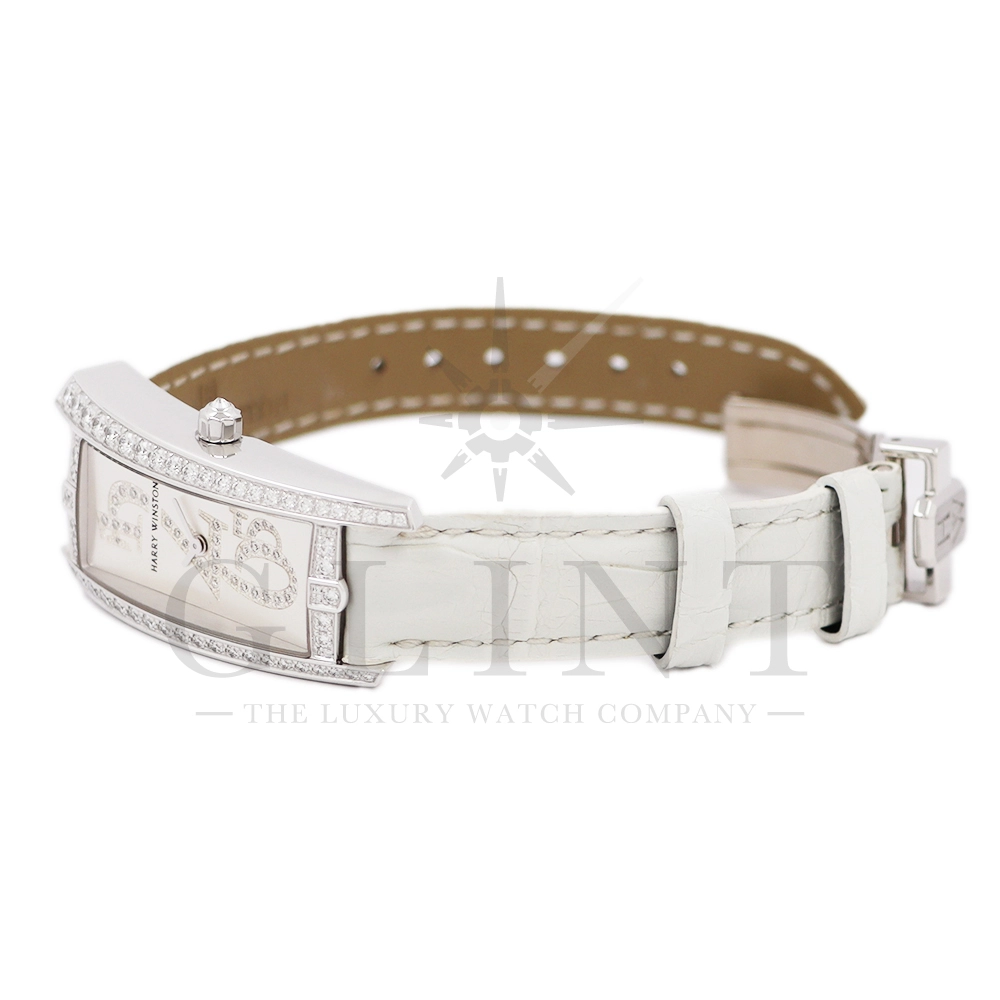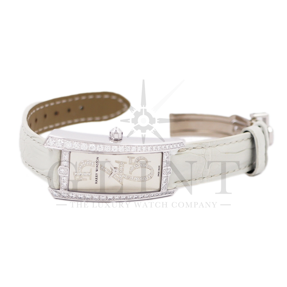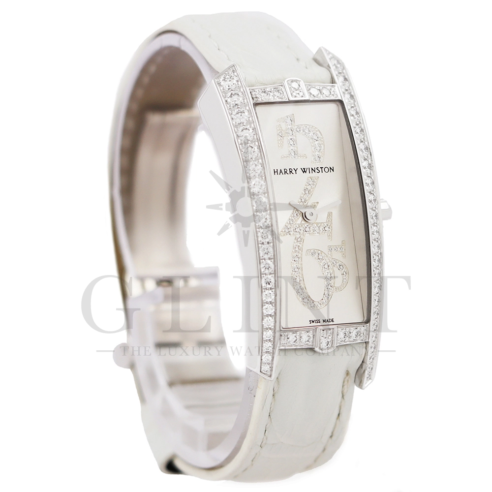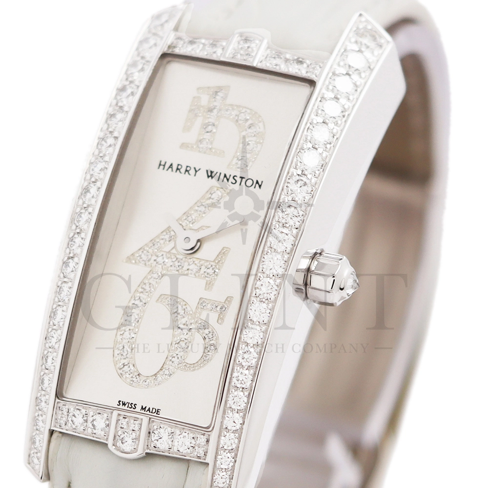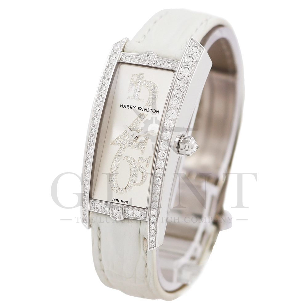 こちらはハリーウィンストン アヴェニュートラフィックです。大胆にアレンジされた12・5・6のアラビア数字にダイヤモンドがセットされた文字盤は、非常に特徴的で洗練されたデザイン。 ベゼルにも大小無数のダイヤモンドがシェイプに合わせ敷き詰められており、ハリーウィンストンらしい気品ある外観の時計となっています。究極のクオリティとデザインの追及を挑戦するハリー・ウィンストンならではとも言える最高の一本をぜひご堪能下さい。