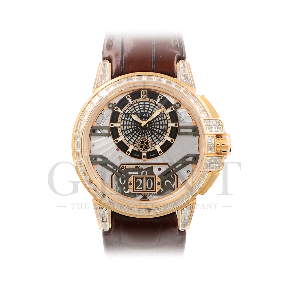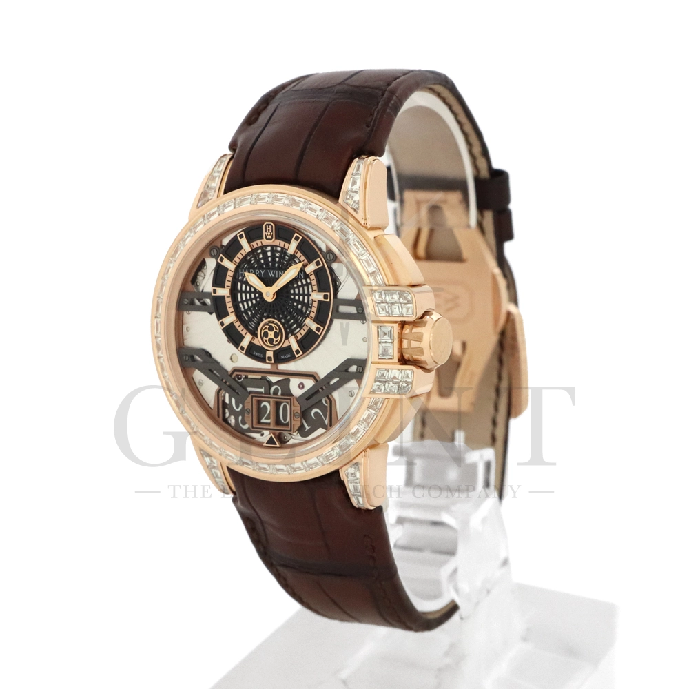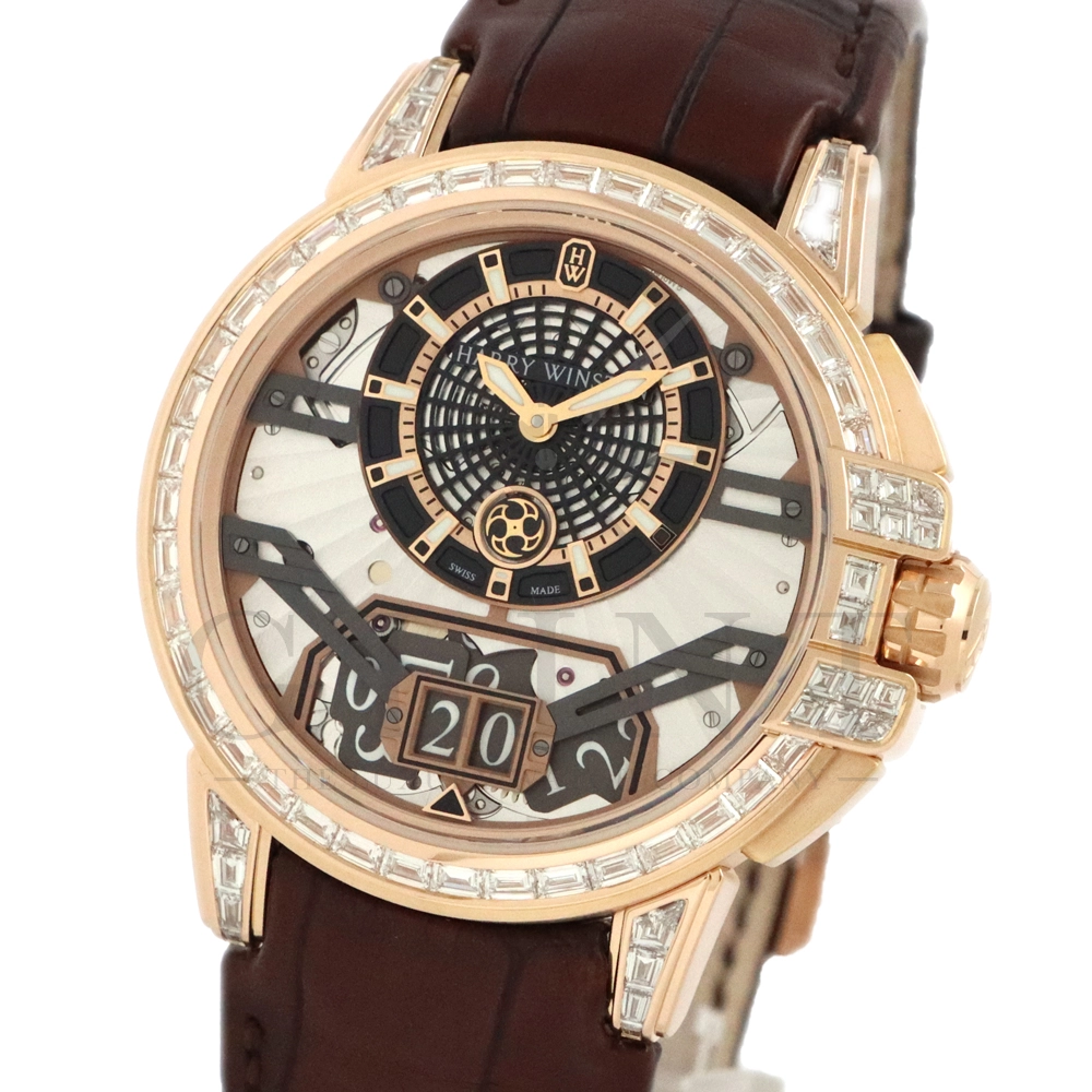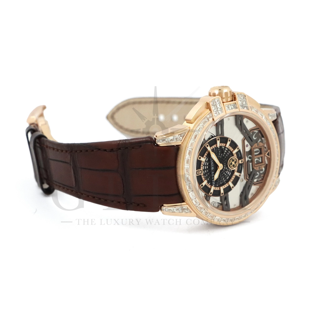 ハリー・ウィンストンが革新的な技術や素材、伝統的な時計作りの技を融合させる事で新たな個性を創造する意味を込められた限定生産シリーズ「プロジェクト Z」。こちらはハリーウィンストン本店を構えるニューヨークの建造物をモチーフとした「プロジェクト Z11」のデザインを継承し、素材に18Kローズゴールドを採用したオーシャン・ビッグデイト・オートマティック 42mmです。モダンにデザインされたラウンドケースにオフセンター配置の時・分表示を搭載したモデル。そして6時位置には立体的なフレームを使用したビッグデイト表示となっており、宙に浮かんでいるかのような立体感で迫力溢れる仕上がりになっております。さらにこちらは、ハリーウィンストン純正バゲットダイヤモンドがセッティングされた世界限定20本のみしか生産されていない超希少モデルとなっており、圧倒的な輝きで腕元を華やかに演出してくれる事でしょう。世界トップジュエリーブランドらしく、他ブランドでは味わえない洗練された雰囲気を感じさせてくれる極上の一本です。