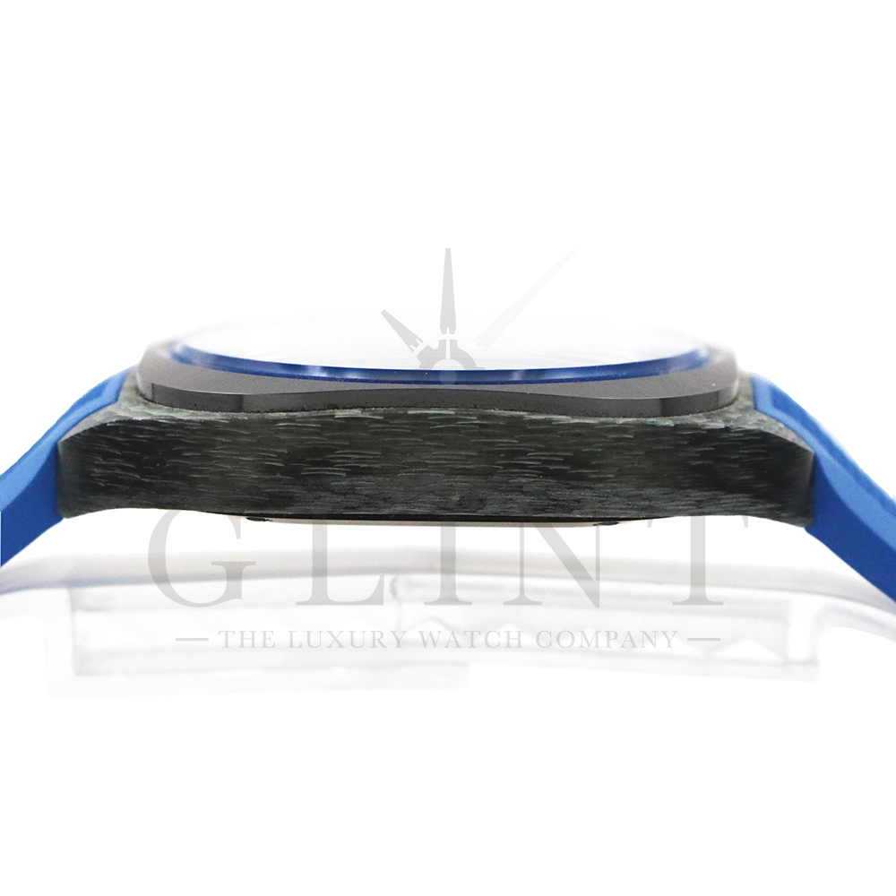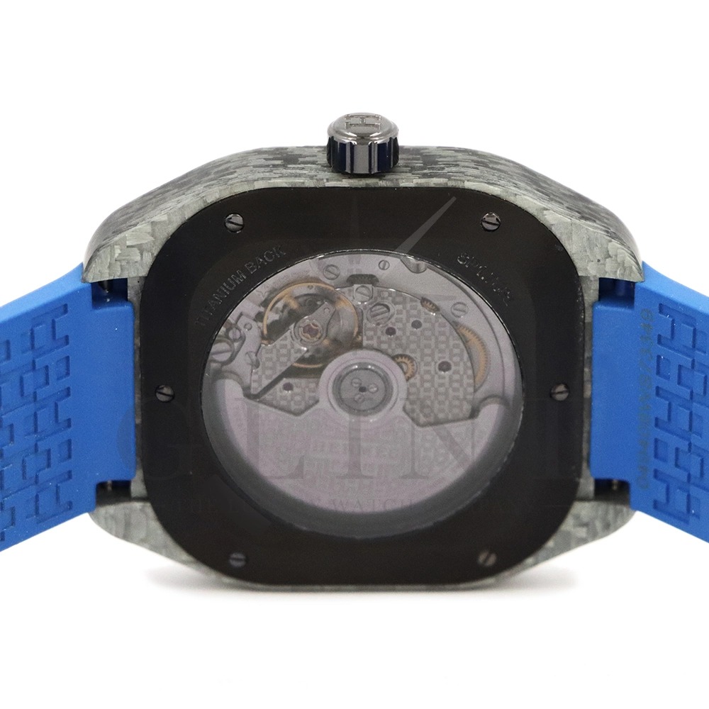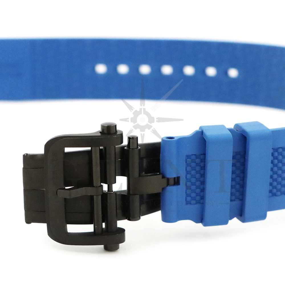 ストラップ:シンプルトゥール・ラバーストラップ(カラー:ブルー、サテン/ブラックDLC仕上げチタン製ディプロイアントバックル)