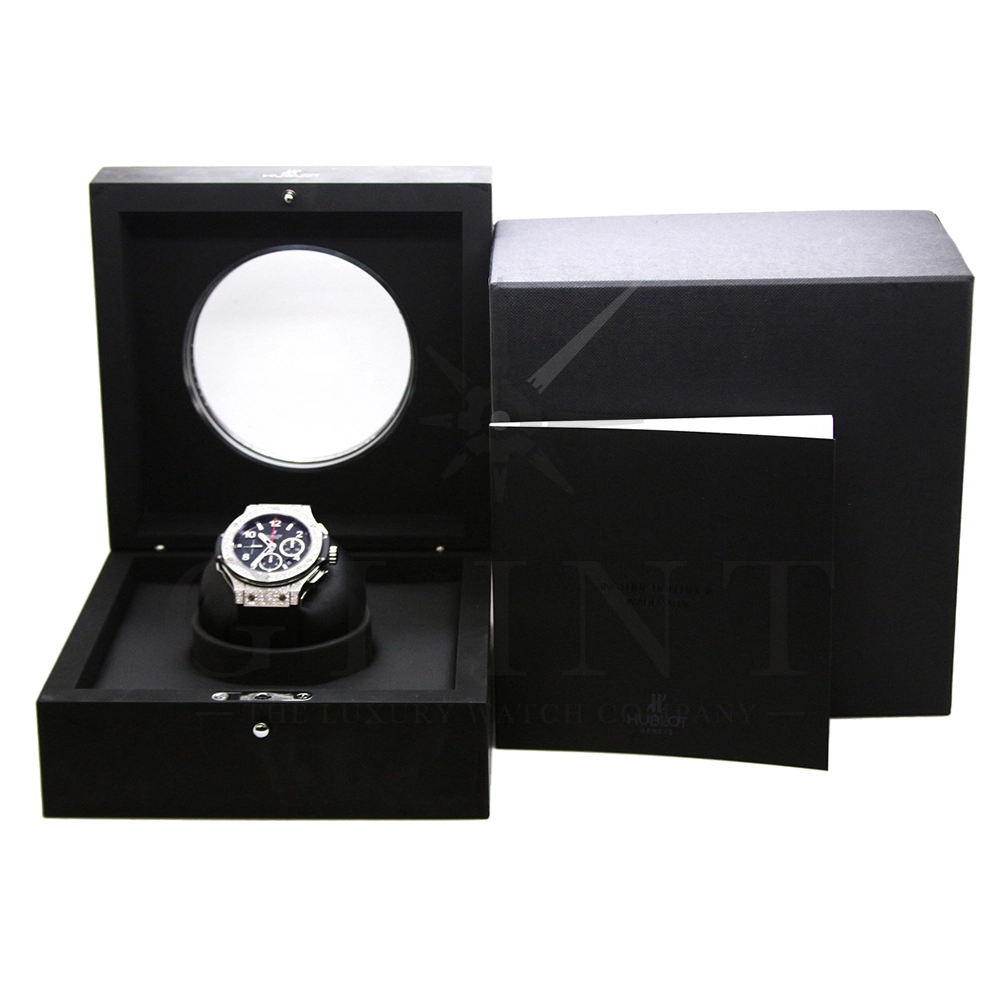 2018年2月メンテナンス済み。外観は新品と見違えるような中古品とは思えない程、素晴らしい状態となります。セッティングされているダイヤモンドは全てウブロ純正ダイヤです。ギャランティカードが欠品の為、特別価格での販売となります。
