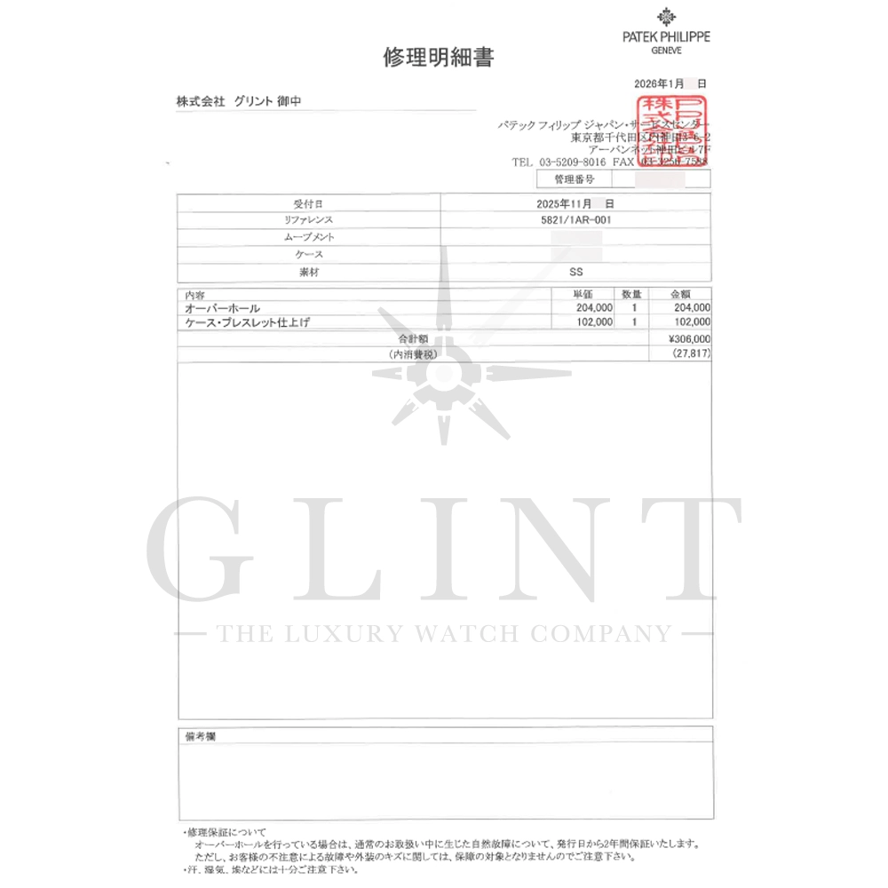 付属品:専用ケース 取扱説明書 パテックフィリップ修理明細書