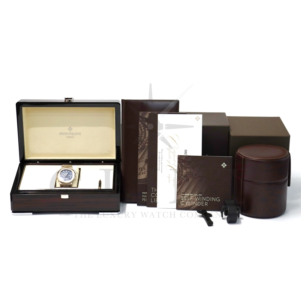 こちらはノーチラス初のグランドコンプリケーションモデル Ref.5740/1G-001です。素材には落ち着いたエレガントさを味わえる18Kホワイトゴールドを使用。ケース厚は脅威の8.42mmとパテックフィリップの永久カレンダーを搭載する現行機の中で最も薄く、グランドコンプリケーションモデルながらも最高の着け心地を堪能できます。文字盤は2016年発表のノーチラス誕生40周年記念モデルに用いられた希少なブルー・ソレイユ文字盤となっており、より特別感を感じさせてくれるでしょう。ノーチラス史上最高峰といっても過言ではないパテックフィリップの伝統的な技術が集約されたモデルは必ずや所有者を格別な思いにさせてくれる事は間違いありません。洗練されたデザインに美しさも感じさせてくれる極上の一本です。