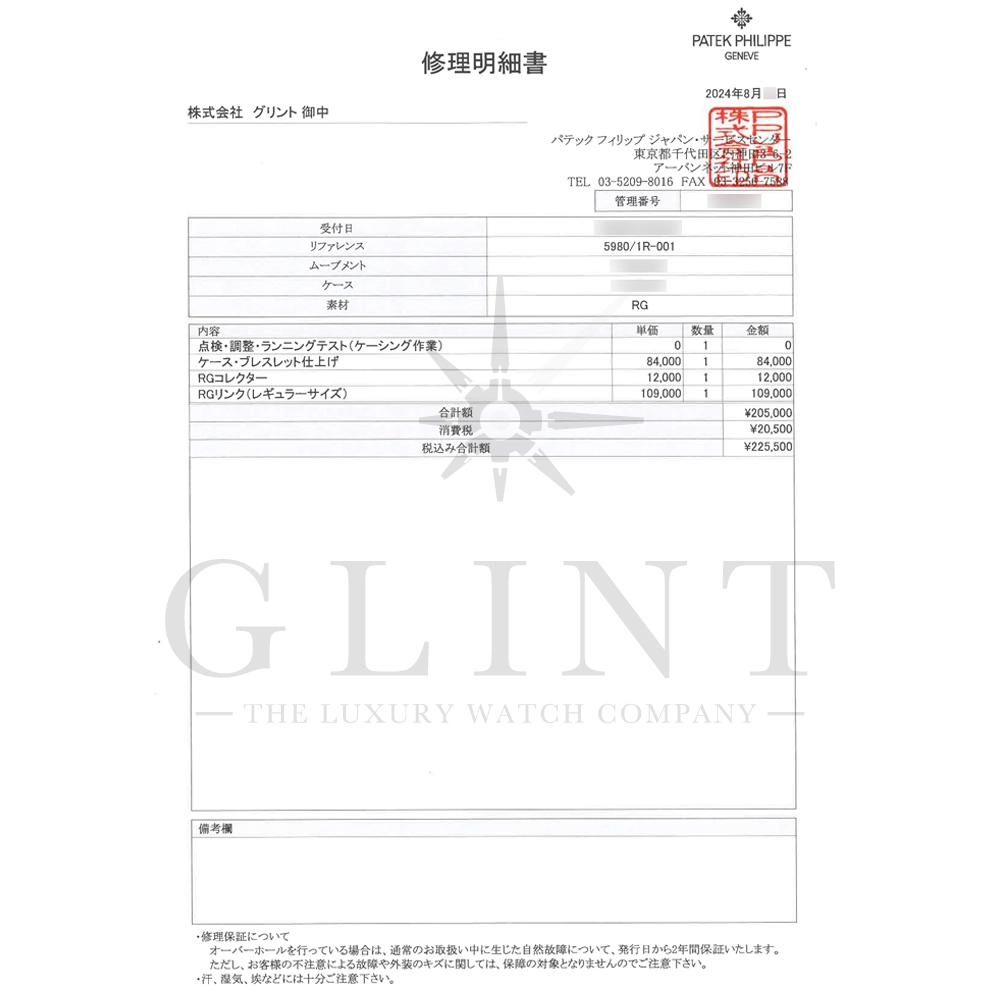 2017年10月の保証書です。パテックフィリップにてオーバーホール済みとなります。店頭での現物確認やその他、詳細画像や動画などご必要の際はお気軽にお問い合わせください。