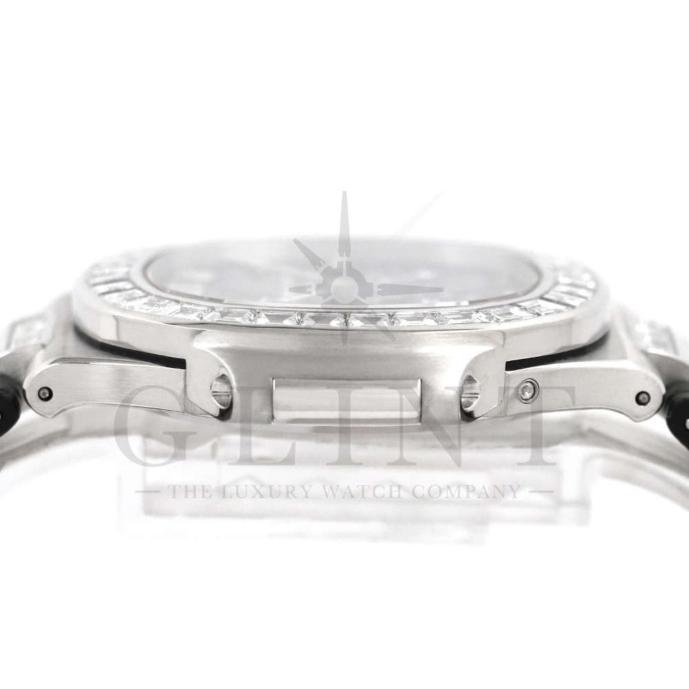 特筆すべき傷は無く、素晴らしいコンディションとなります。セッティングされているバゲットダイヤモンドはパテックフィリップ純正ダイヤモンドです。