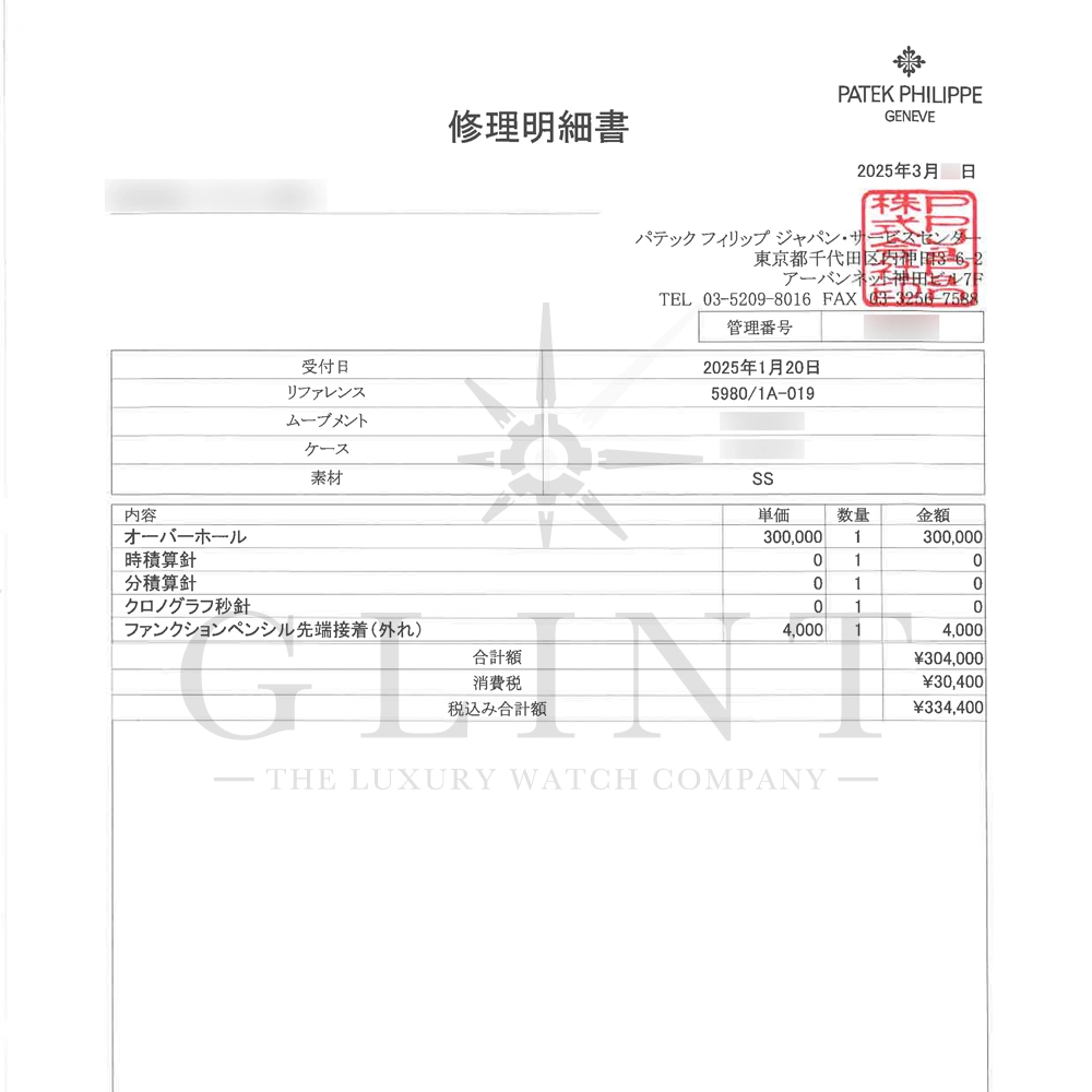 付属品:専用ケース 保証書(2015年9月) 取扱説明書 調整ピン パテックフィリップ修理明細書