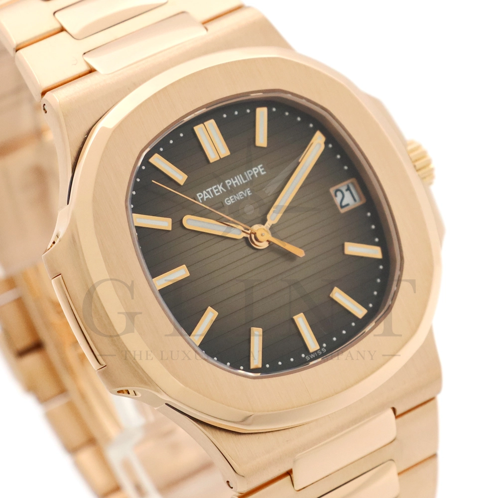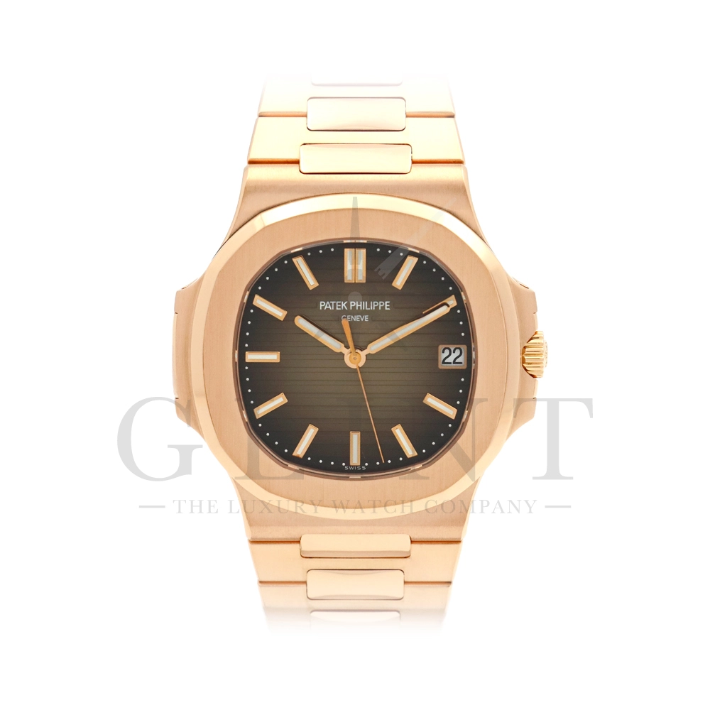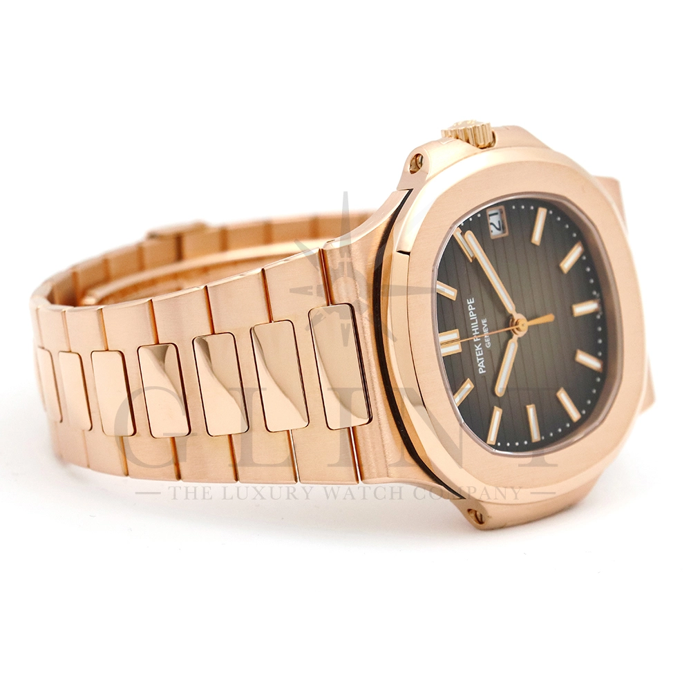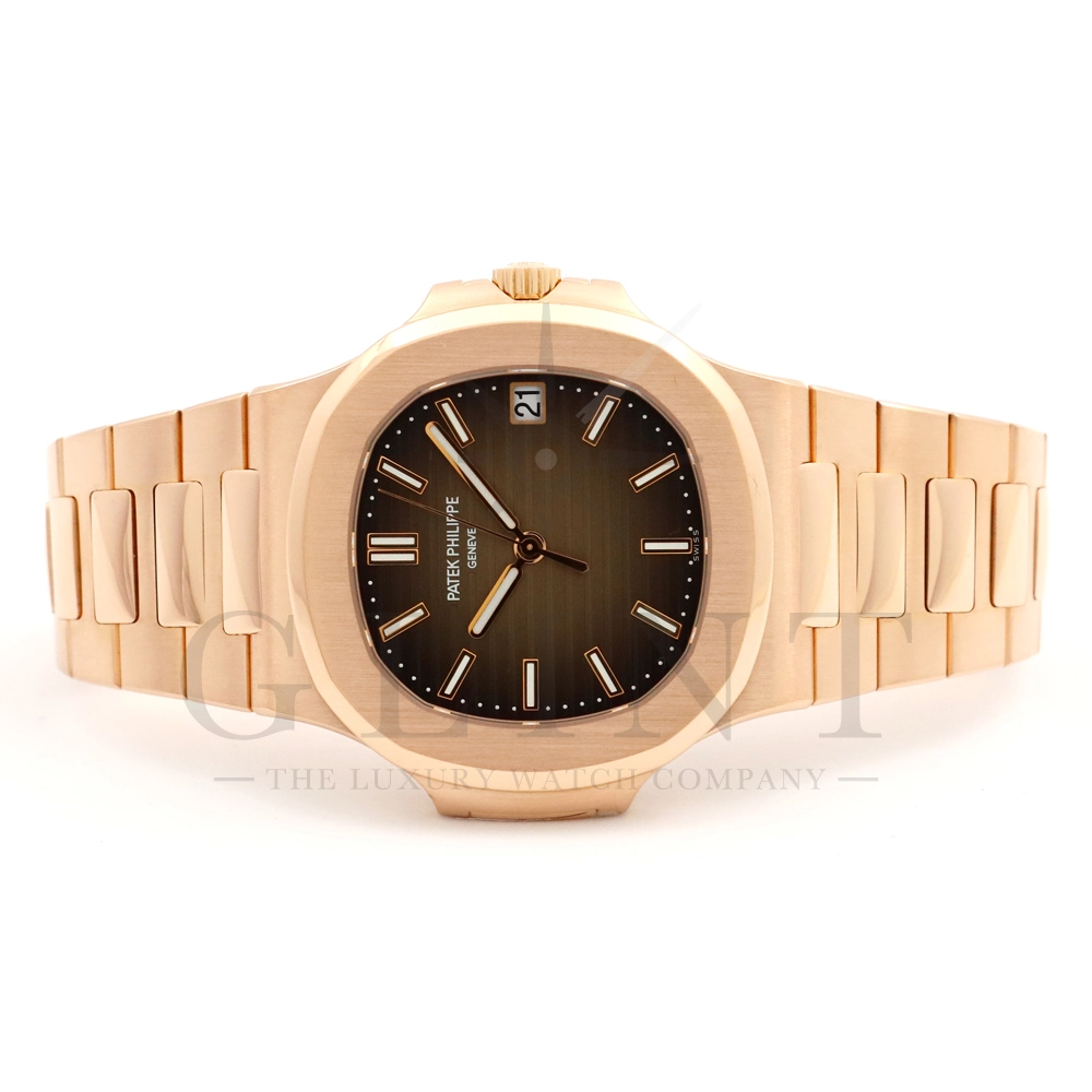 2015年に登場したこちらのRef.5711/1R-001は、素材にローズゴールドを使用し、高級感を存分に押し出したブレスレットタイプのノーチラス。ローズゴールドモデルにしか配されないブラウンを基調としたグラデーションカラーの文字盤との絶妙なコントラストは所有者を格別な気持ちにさせてくれるでしょう。ブレスレットはケース厚8.3mmの薄型に合わせて仕上げられており、ゴールド素材ならではの重量感もしっかり味わえる事ながら、腕元への絶妙なフィット感が抜群の着け心地と装着感を与えてくれます。シンプルながらもエレガントでラグジュアリーな印象を与えてくれるノーチラス。名実ともに世界最高の高級時計ブランドが誇る極上のタイムピースです。
