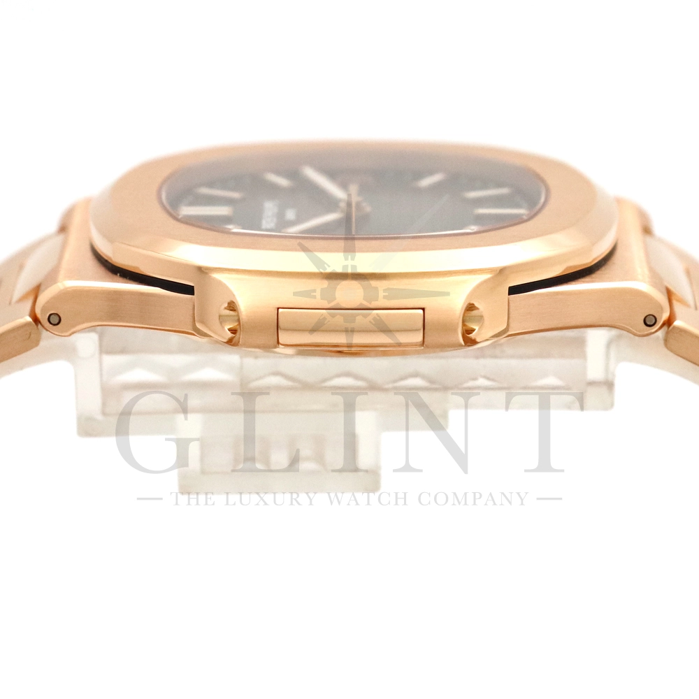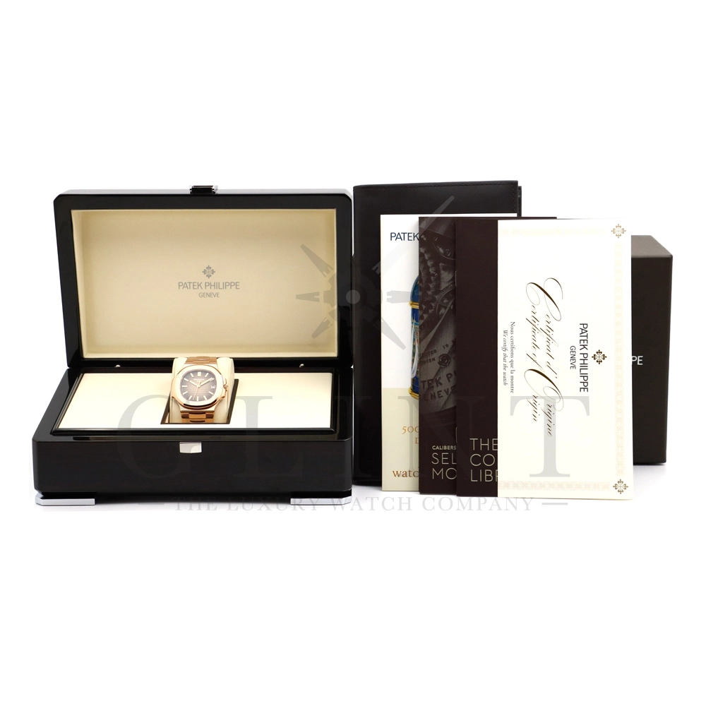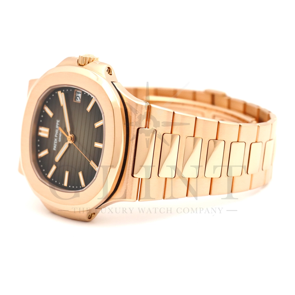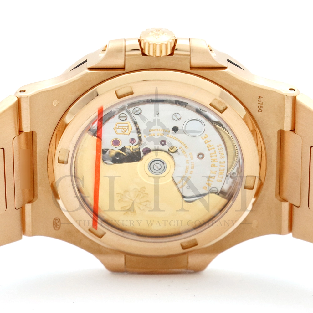 2015年に登場したこちらのRef.5711/1R-001は、素材にローズゴールドを使用し、高級感を存分に押し出したブレスレットタイプのノーチラス。ローズゴールドモデルにしか配されないブラウンを基調としたグラデーションカラーの文字盤との絶妙なコントラストは所有者を格別な気持ちにさせてくれるでしょう。ブレスレットはケース厚8.3mmの薄型に合わせて仕上げられており、ゴールド素材ならではの重量感もしっかり味わえる事ながら、腕元への絶妙なフィット感が抜群の着け心地と装着感を与えてくれます。シンプルながらもエレガントでラグジュアリーな印象を与えてくれるノーチラス。名実ともに世界最高の高級時計ブランドが誇る極上のタイムピースです。