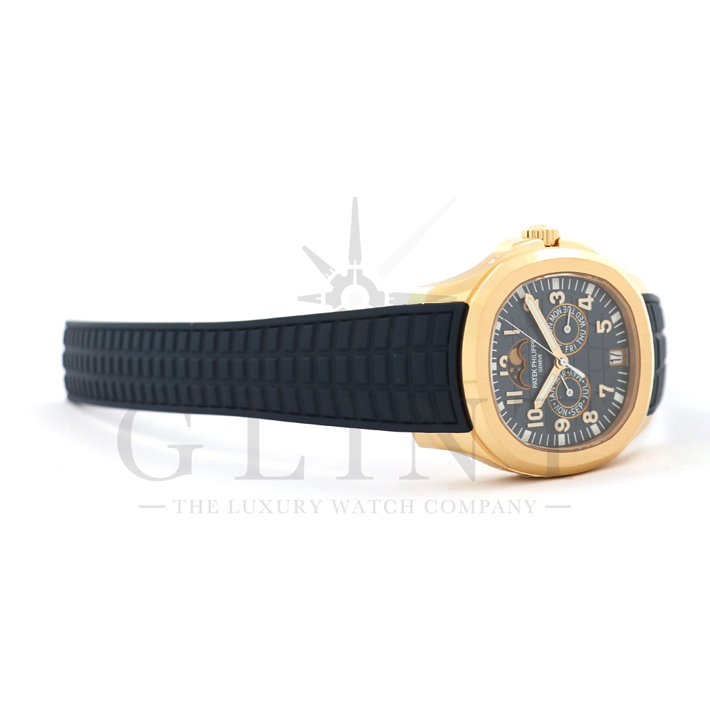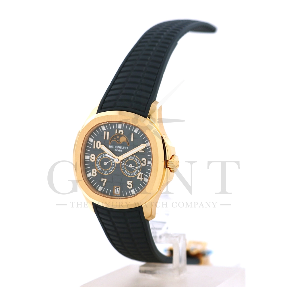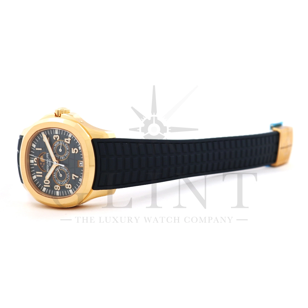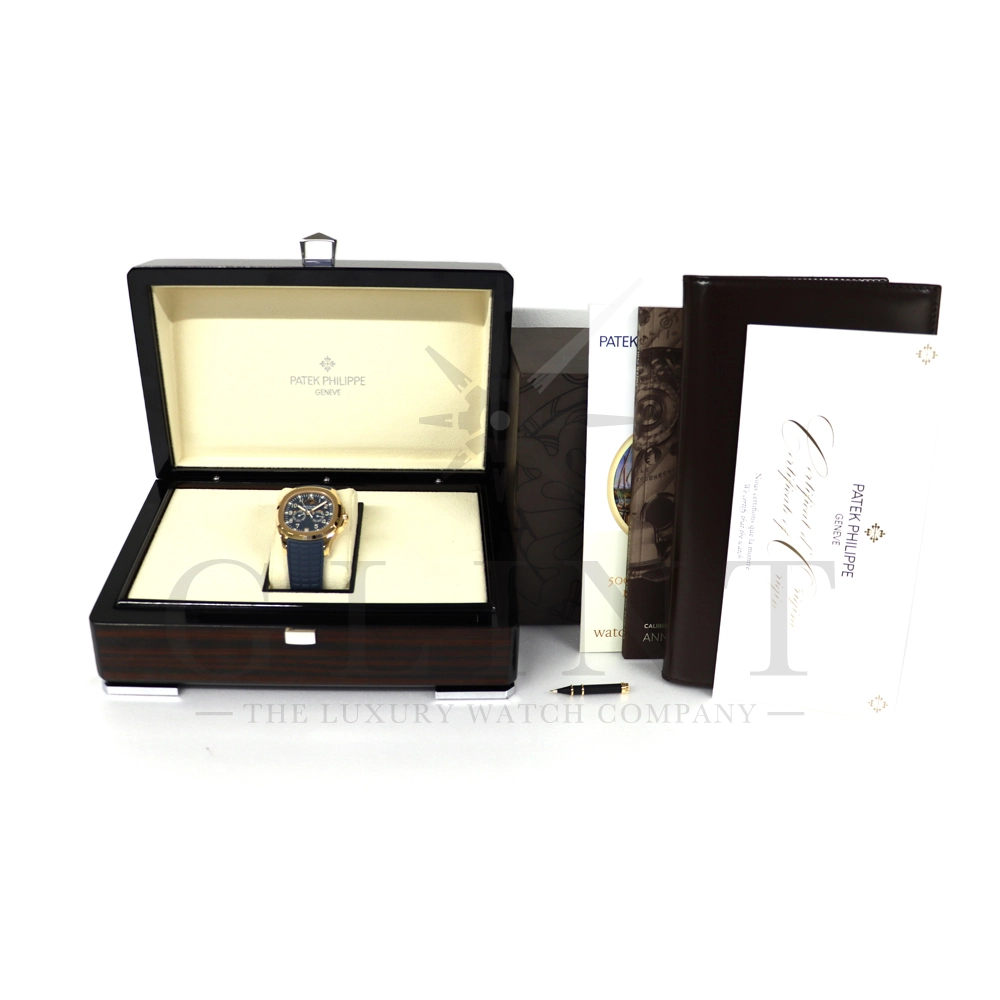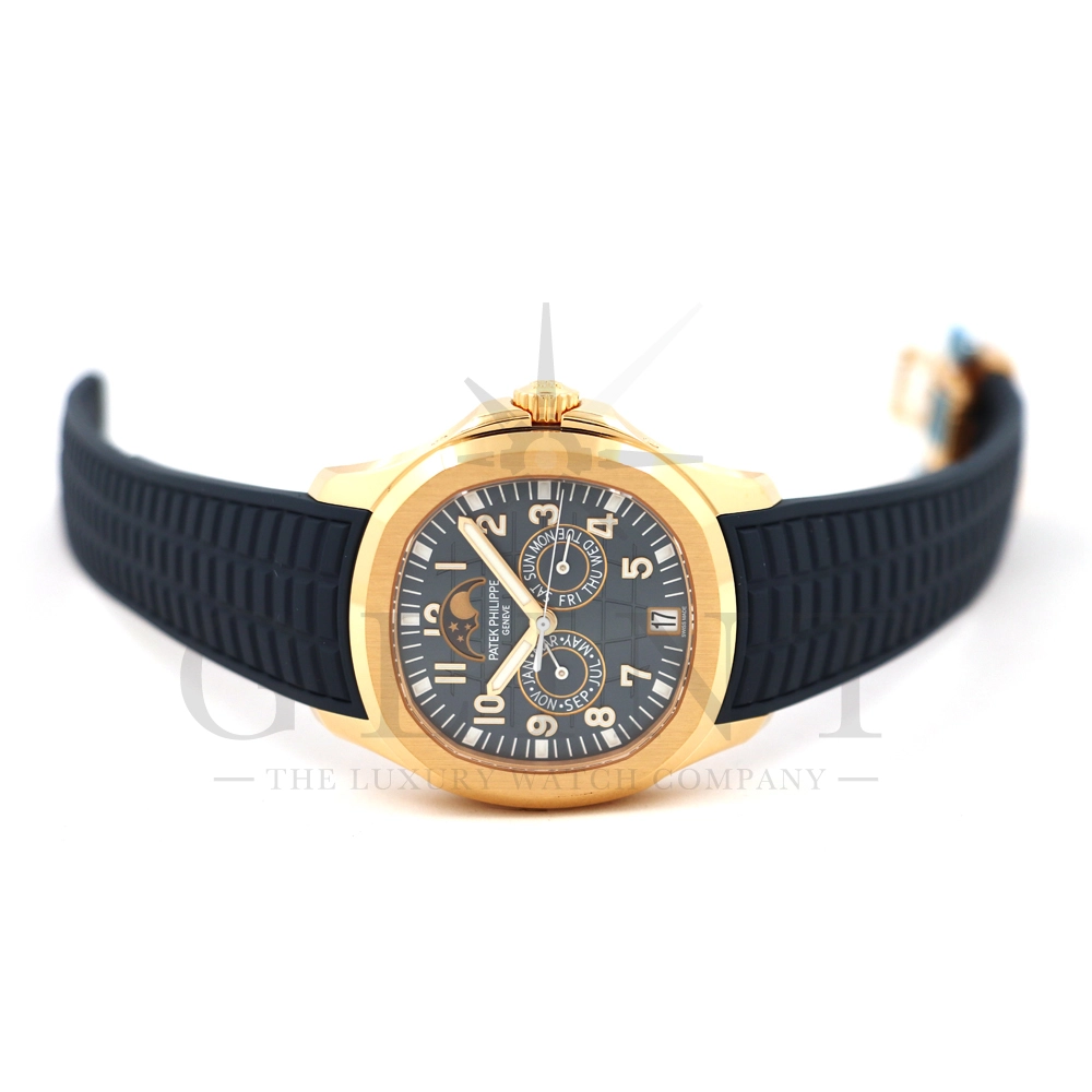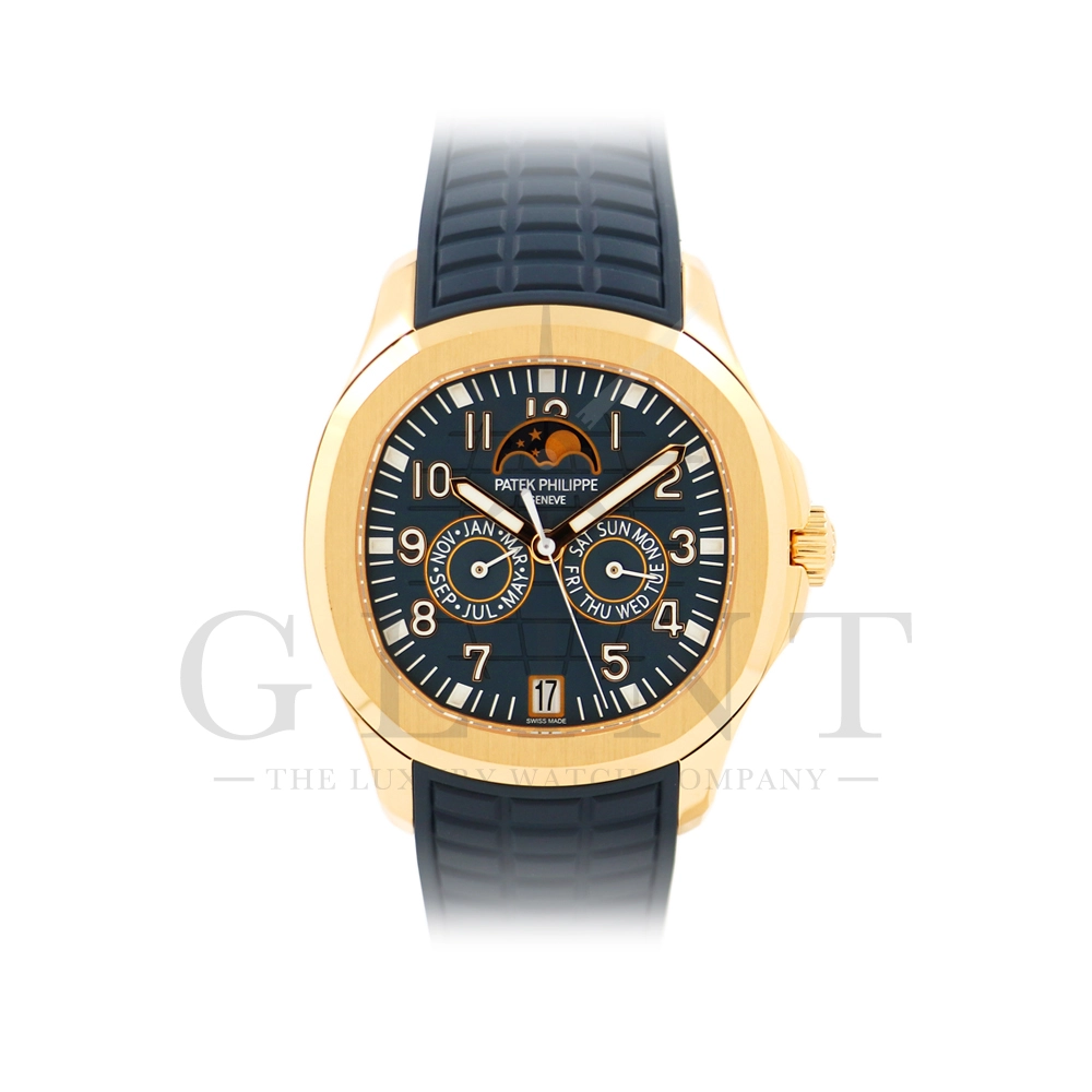 こちらは2023年新作モデルのアクアノート・ルーチェ 5261R-001です。特許取得の年次カレンダーを搭載し、婦人用コンプリケーテッド・ウォッチのレパートリーに、新たにジュエリーのないモデルが加わりました。39.9mmのローズゴールドケースとベゼルの丸みを帯びた8角形の象徴的なデザインは、ポリッシュ仕上げとサテン仕上げが生み出すコントラストによって強調されています。ブルーグレーの文字盤とアクアノート・パターンのコンポジット・バンドが、このモデルの《コンテンポラリー・カジュアル・シック》なスタイルを際立たせています。新たに進化したアクアノート・ルーチェは必ずや所有者を満足させてくれるタイムピースです。