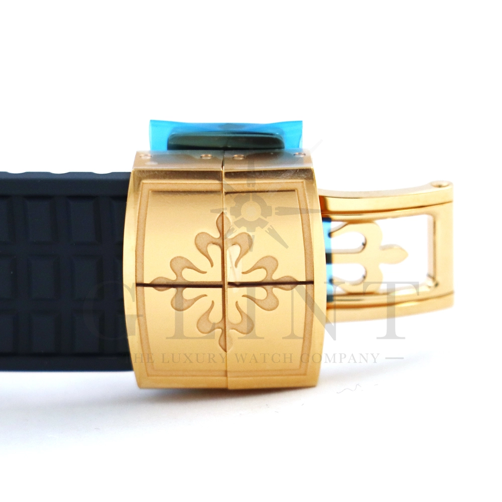 文字盤:ブルーグレー アクアノート・エンボス・パターン ホワイト夜光付ゴールド植字数字