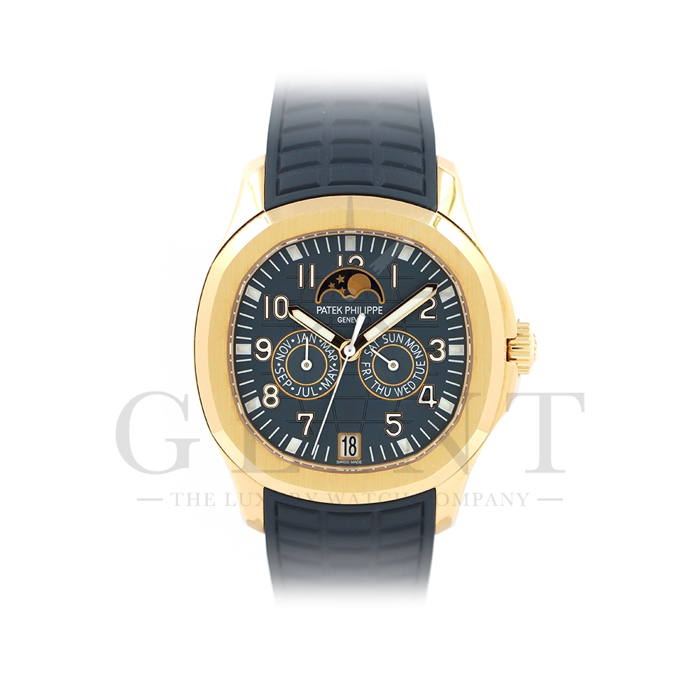 文字盤:ブルーグレー アクアノート・エンボス・パターン ホワイト夜光付ゴールド植字数字