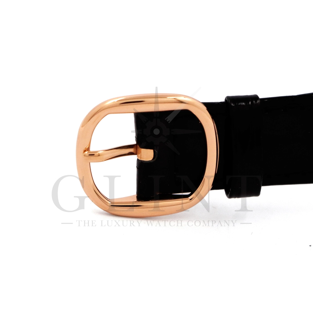 ストラップ:ラージ・スクエアのアリゲーター・バンド、カラーはブリリアント・ブラック。 ピンバックル