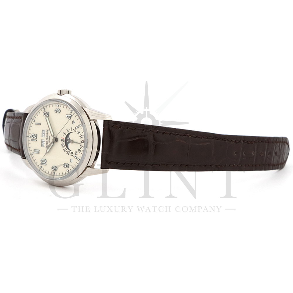 ムーブメント:自動巻ムーブメント Cal.324 S Q、永久カレンダー、昼夜表示。 曜日、月、閏年、昼夜を窓表示。 外径: 32 mm。 厚さ: 4.97 mm。 部品総数: 367個。 石数: 29石。 連続駆動可能時間: 最小35時間、最大45時間。 自動巻ローター: 21金ゴールド中央ローター。 テンプ: ジャイロマックス。 毎時振動数: 28 800 (4 Hz)。 SpiromaxR。 認定刻印: パテック フィリップ・シール