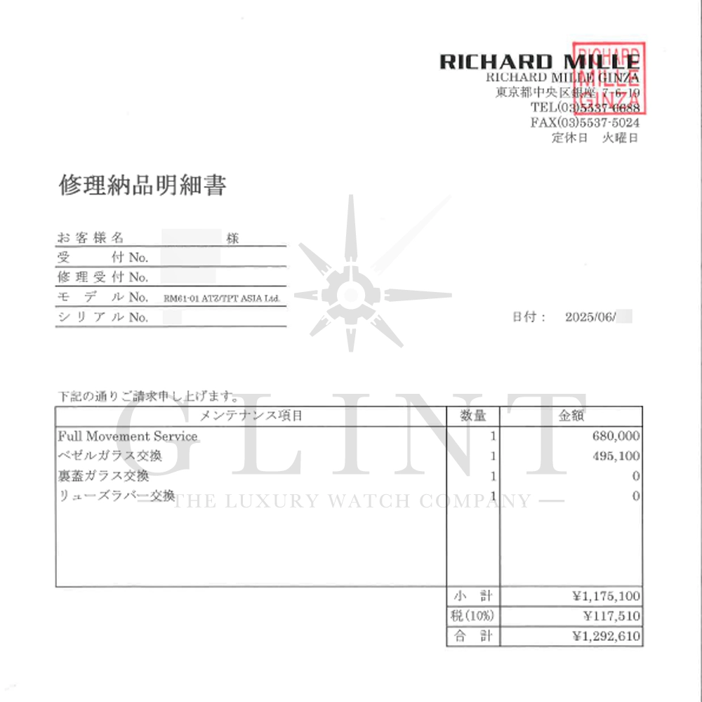 2025年6月リシャールミルにてオーバーホール後はご使用されていない状態で特筆すべき傷はほとんど無く、大変素晴らしいコンディションとなります。