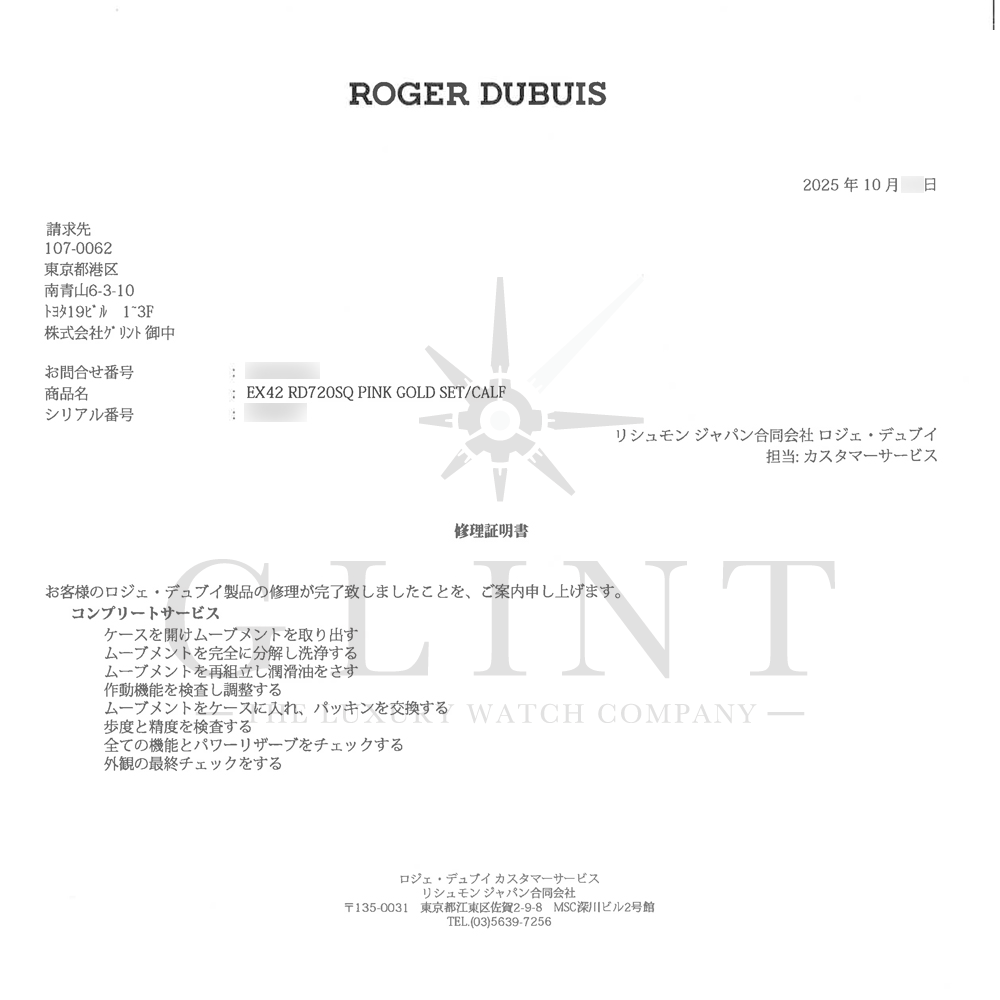付属品:専用ケース 保証書(2023年12月) 取扱説明書 ロジェデュブイ修理明細書 替えベルト(中古)