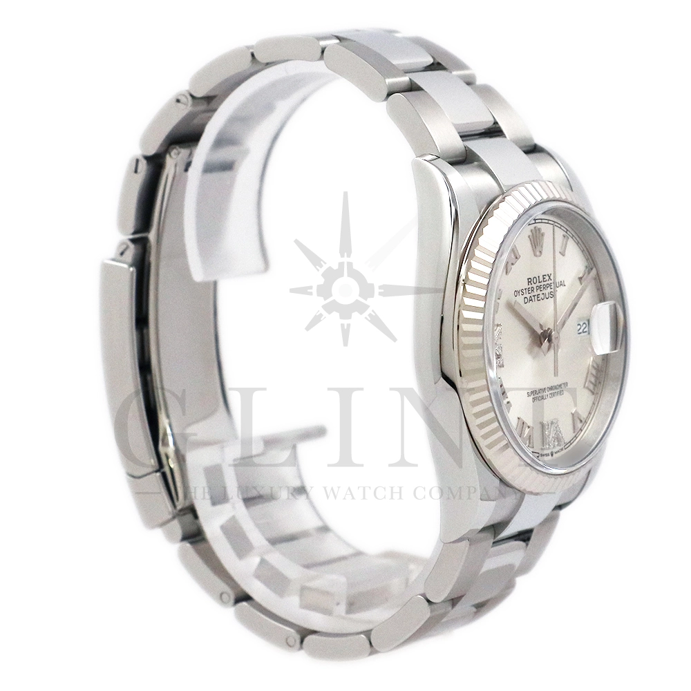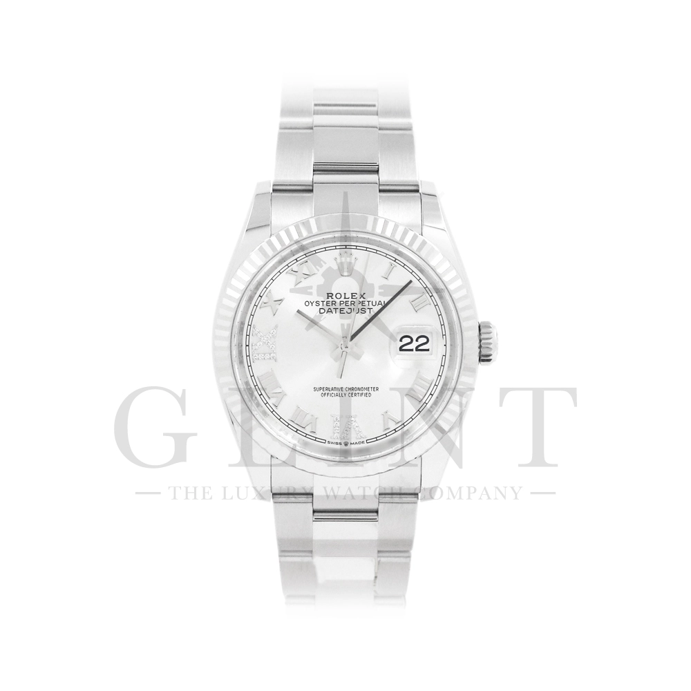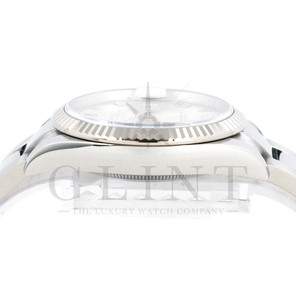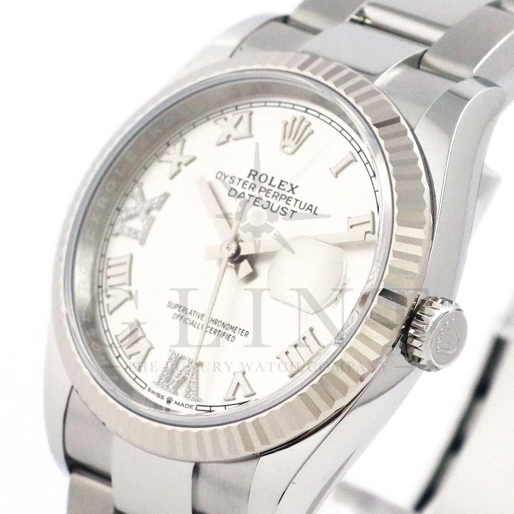 こちらはロレックス デイトジャスト36です。サンレイ仕上げとなるシルバーカラーの文字盤にローマ数字のVIとIXに24個のダイヤモンドがセッティングされたラグジュアリー仕様。シンプルな単色ダイヤルと比べると雰囲気がまるで違います。ムーブメントにはロレックスによる完全自社製造キャリバー3235を搭載し、パワーリザーブが70時間まで延長され、何時でも日付調整を可能とする事で実用性も上がりました。唯一無二の雰囲気を感じさせてくれる特別なデイトジャストです。