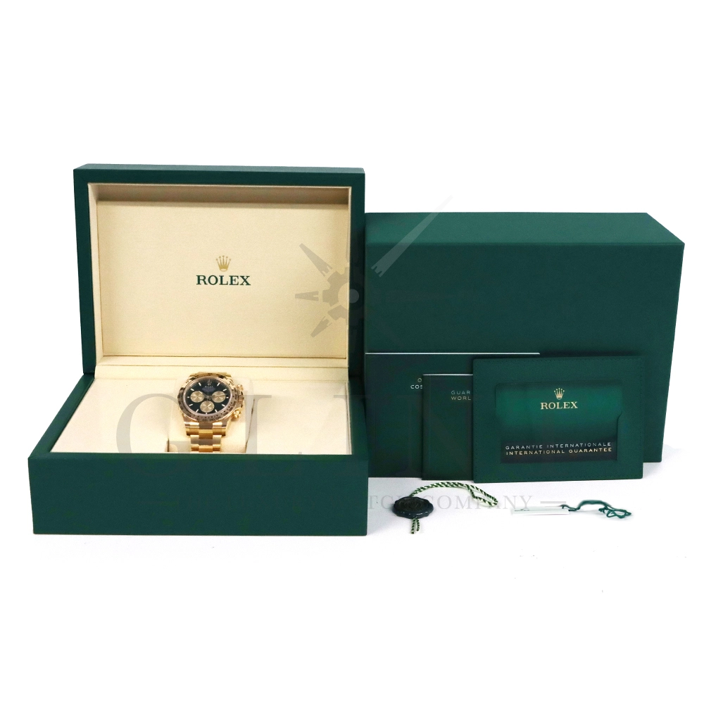 こちらはロレックス デイトナ 126508です。コスモグラフ デイトナ誕生60周年を迎えた2023年に新モデルとして生まれ変わりました。ダイアルのアワーマーカーとカウンター目盛り等のグラフィックバランスが一新され、自社開発・製造の新ムーブメントCal.4131を搭載。エネルギーロスを低減するクロナジー エスケープメント、耐衝撃性に優れるパラフレックス ショック・アブソーバ等の革新技術が採用されております。ケースとブレスレットには18Kイエローゴールドを採用。文字盤にはブライトグリーンにインダイヤルにはゴールデンカラーを使用しております。さらに進化したデイトナは必ずや所有者を満足させることは間違いありません。