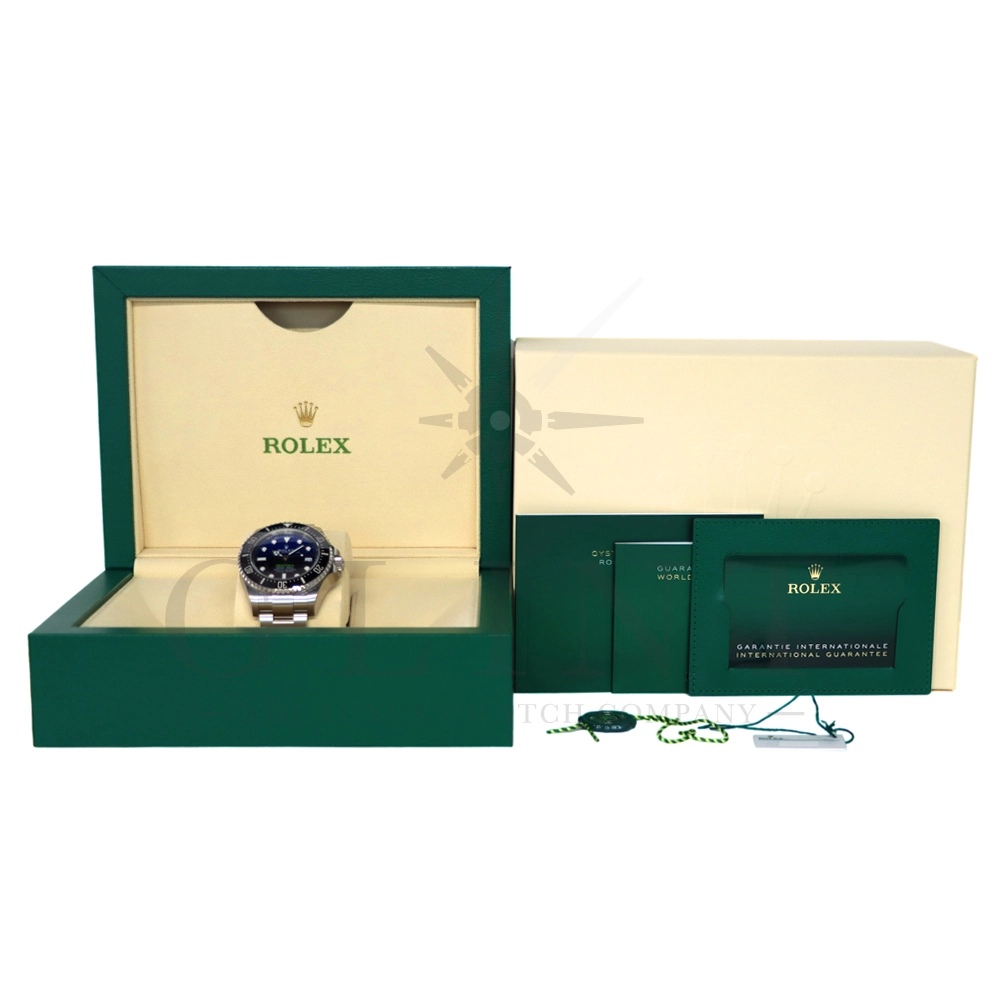 こちらはロレックス ディープシーです。2022年の新作モデルとして登場した136660。前作の126660からの変更点はベゼルをわずかにスリム化し、面取りされたサファイアクリスタルを採用。最適化されたクロマライトディスプレイにデイトウィンドウが8%拡大されたことで、日付表示自体も大きくなっております。また、ケースバックはグレード5チタンからRLXチタンに改名。ブレスレットはフリップロック式のエクステンションが廃止されました。ロレックスが誇るプロフェッショナル用のハイスペックに仕上げたダイバーズウォッチは他のモデルには無い雰囲気を感じさせてくれる事は間違いありません。