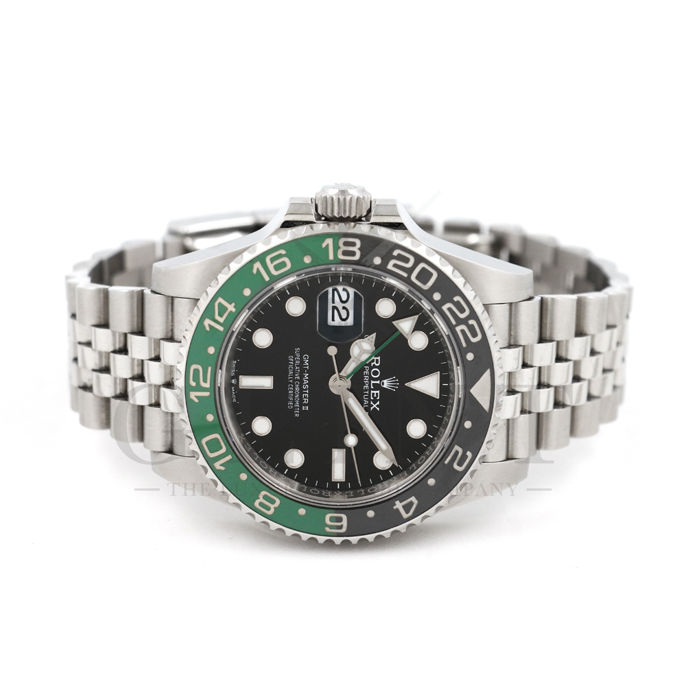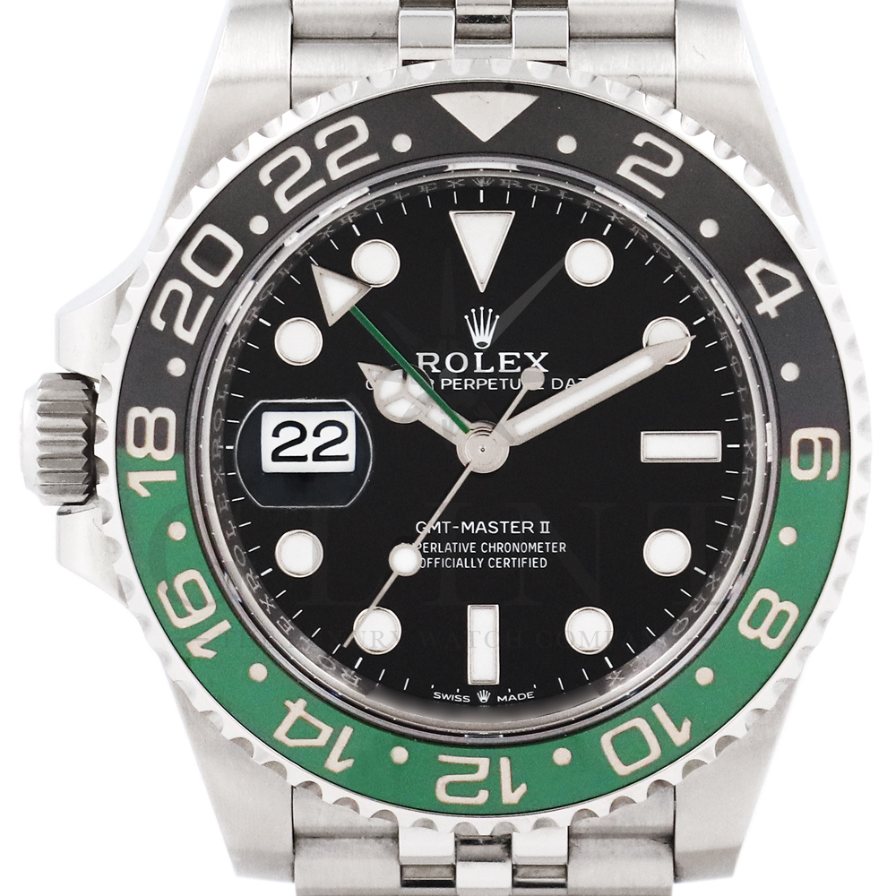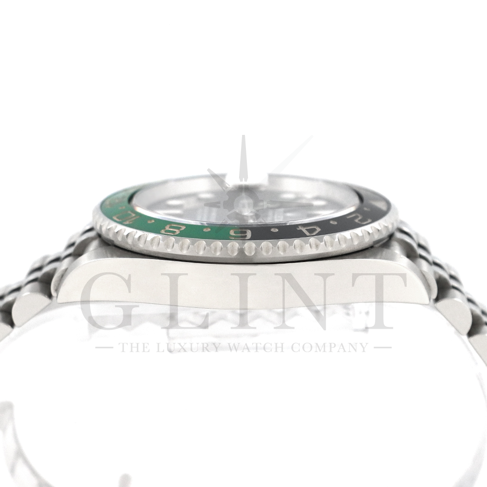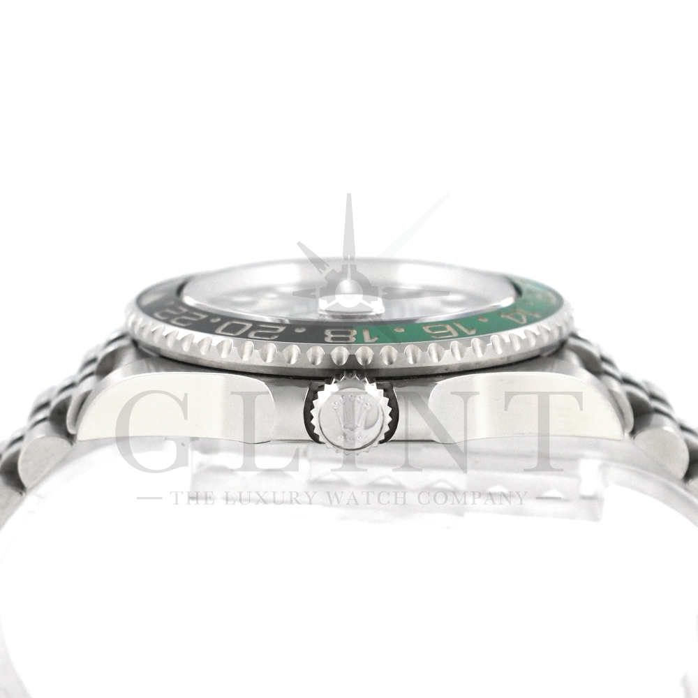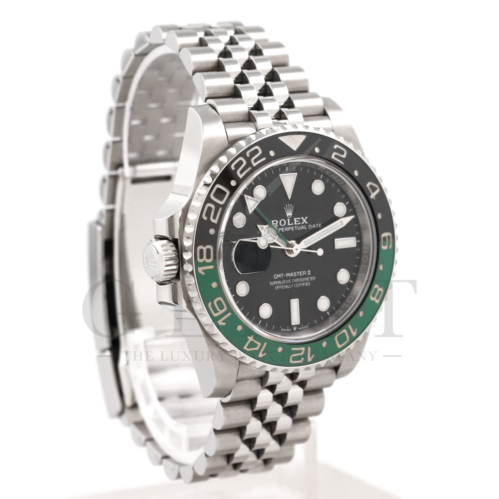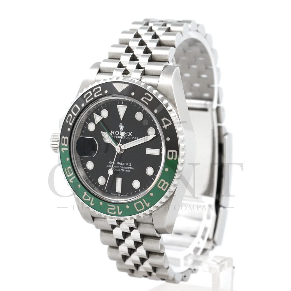 こちらはロレックス GMTマスター2 126720VTNRです。通称“スプライト”と呼ばれるグリーンとブラックのツートンカラーのベゼルにGMTマスターIIの為に専用設計されたジュビリーブレスレットを搭載。文字盤の24時間針にはベゼルと同じくグリーンカラーを採用しております。こちらのGMTマスターIIはレフティモデルとして、リューズを左側に配置した新仕様。この斬新なデザインに魅了される事でしょう。ムーブメントには126710と同じく次世代のGMTマスターIIを担うCal.3285を使用しております。更に進化したロレックスの人気モデルで腕元をオシャレに演出してみてはいかがでしょうか。