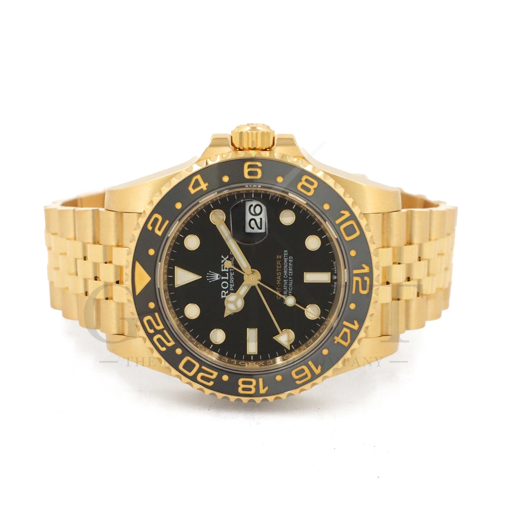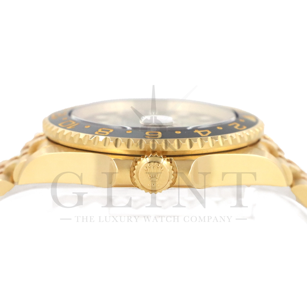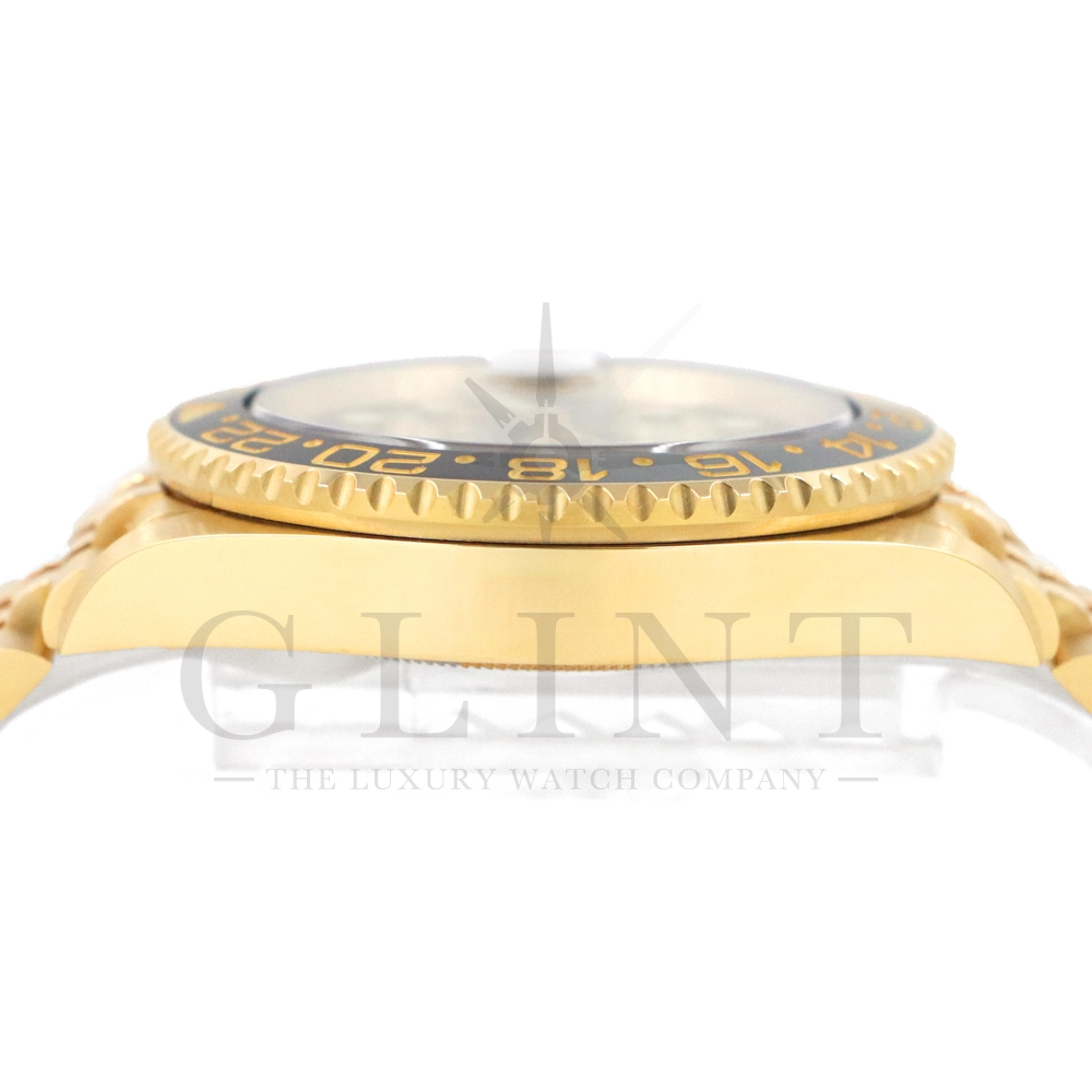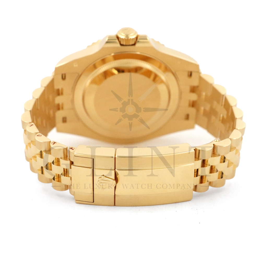 こちらは2023年の新作として発表されたロレックス GMTマスター2 126718GRNRです。ベゼルはグレーとブラックのツートンカラー、文字盤の24時間針には18ctイエローゴールドを採用。ケース素材と見事な相性で魅了します。ブレスレットには1945年にオイスターパーペチュアルデイトジャストの発売に合わせて特別にデザインされた5列リンクのジュビリーブレスレットを搭載し、しなやかで快適な装着感と特有の高級感を与えてくれます。搭載されているロレックスが独自に開発・製造したキャリバー3285はロレックスが特許を取得したクロナジーエスケープメントを採用し、高いエネルギー効率により70時間ものパワーリザーブを誇ります。ワンランク上のGMTマスターIIをお楽しみになりたい方にオススメの一本です。