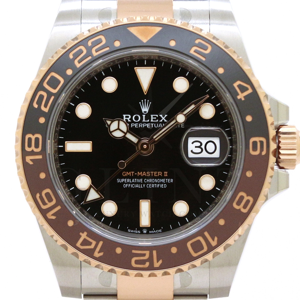 こちらはROLEX GMTマスターII Ref.126711CHNRです。素材にはオイスタースチールとエバーローズゴールドを採用したコンビモデル。ブラックとブラウンのツートーンカラーベゼルとエバーローズゴールドの相性は見事で、特有の高級感を演出してくれます。ムーブメントには次世代のGMTマスターIIを担うCal.3285を使用。クロナジーエスケープメントを備え、香箱の構造を一新された事で、パワーリザーブが従来の48時間から70時間にグレードアップしており、実用性が高められました。更に進化したROLEX人気モデルで腕元をオシャレに演出してみてはいかがでしょうか。