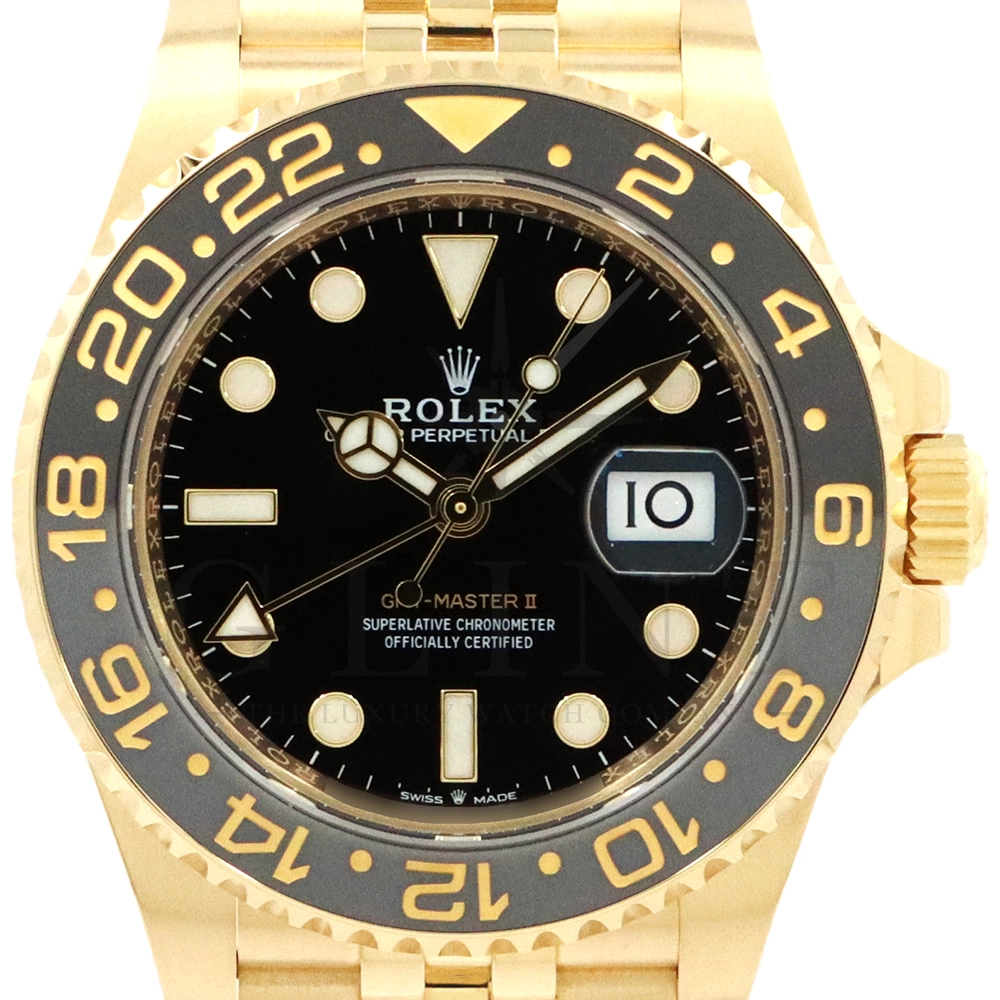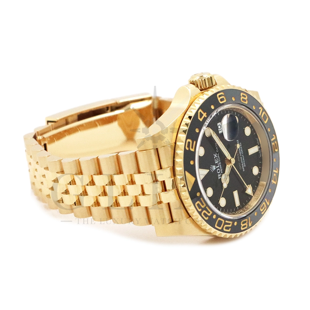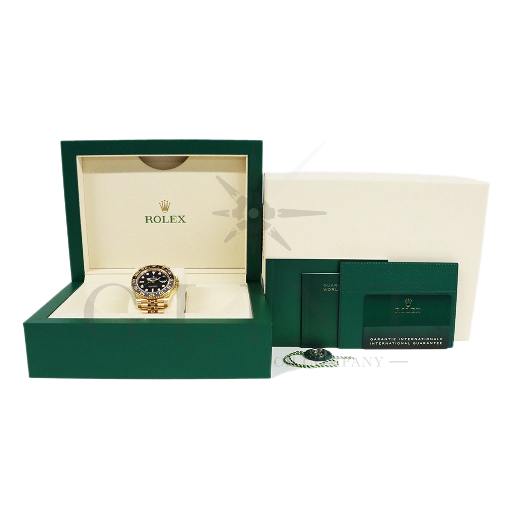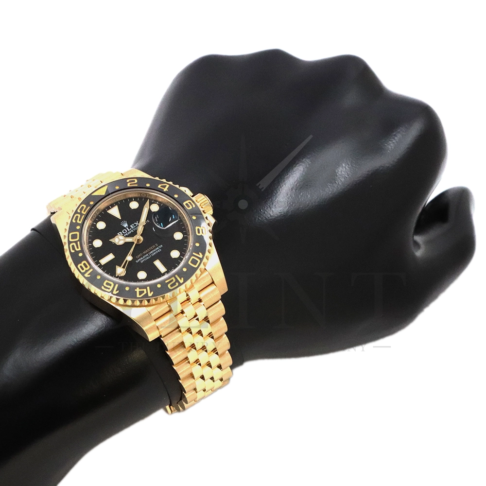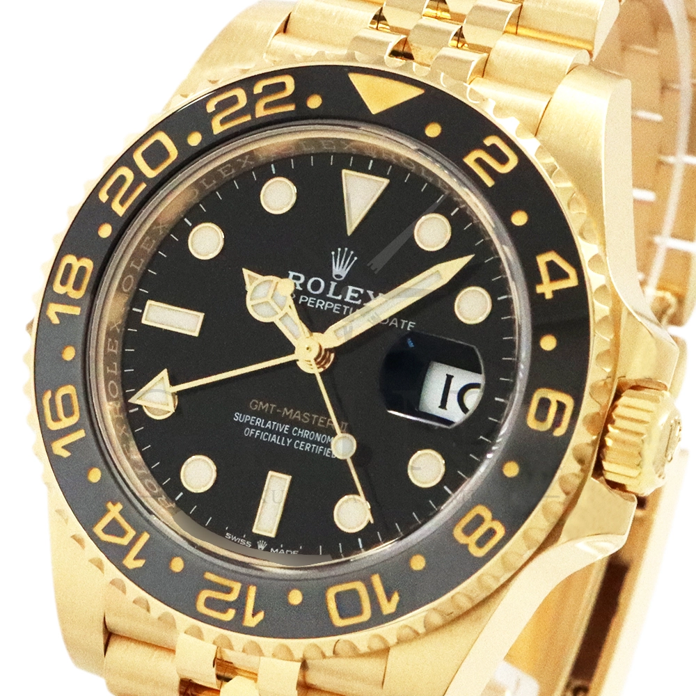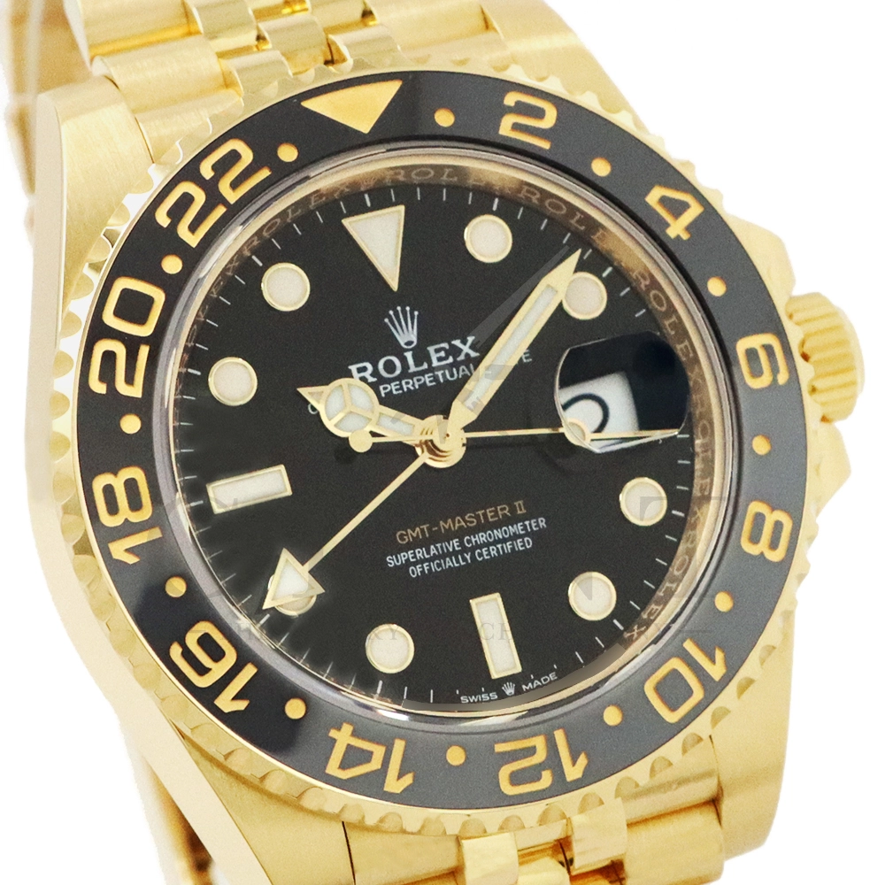 こちらは2023年の新作として発表されたロレックス GMTマスター2 126718GRNRです。ベゼルはグレーとブラックのツートンカラー、文字盤の24時間針には18ctイエローゴールドを採用。ケース素材と見事な相性で魅了します。ブレスレットには1945年にオイスターパーペチュアルデイトジャストの発売に合わせて特別にデザインされた5列リンクのジュビリーブレスレットを搭載し、しなやかで快適な装着感と特有の高級感を与えてくれます。搭載されているロレックスが独自に開発・製造したキャリバー3285はロレックスが特許を取得したクロナジーエスケープメントを採用し、高いエネルギー効率により70時間ものパワーリザーブを誇ります。ワンランク上のGMTマスターIIをお楽しみになりたい方にオススメの一本です。