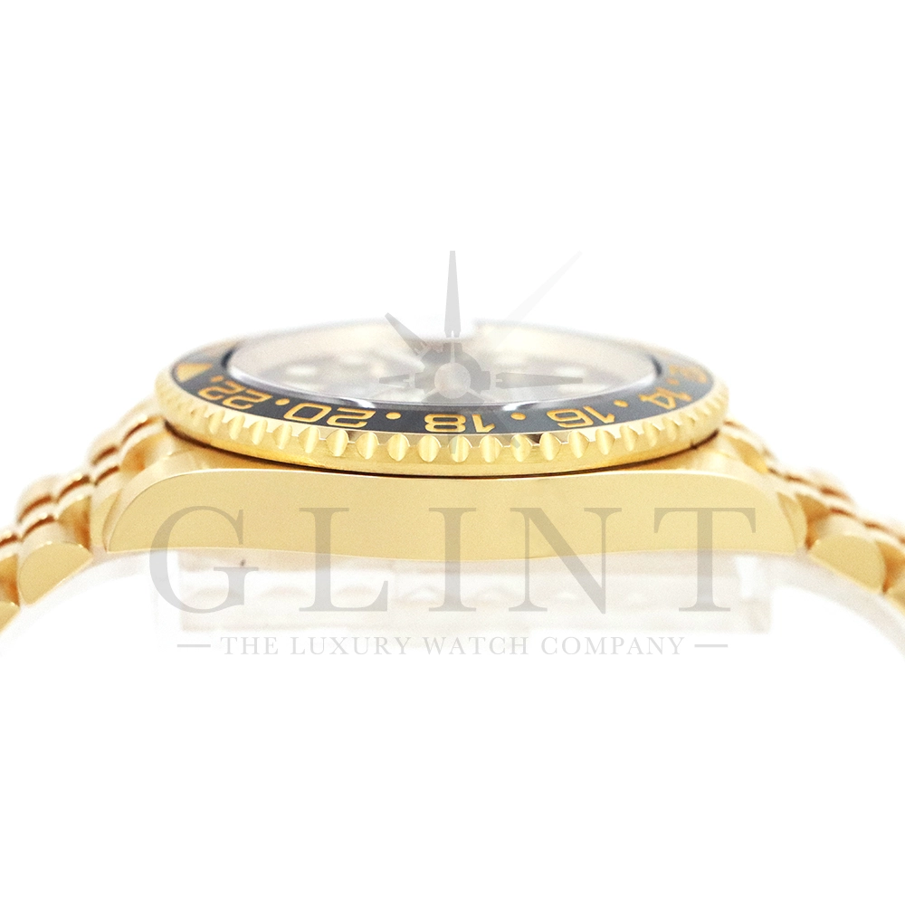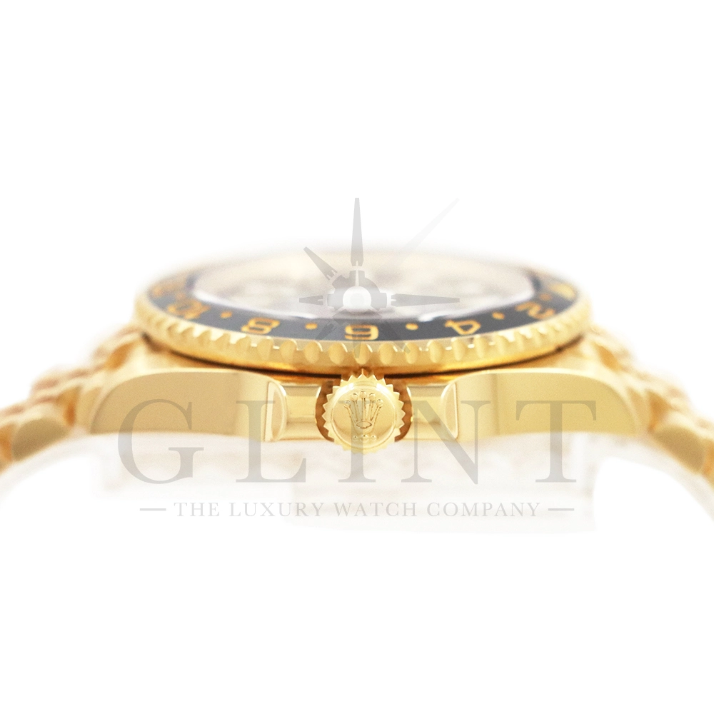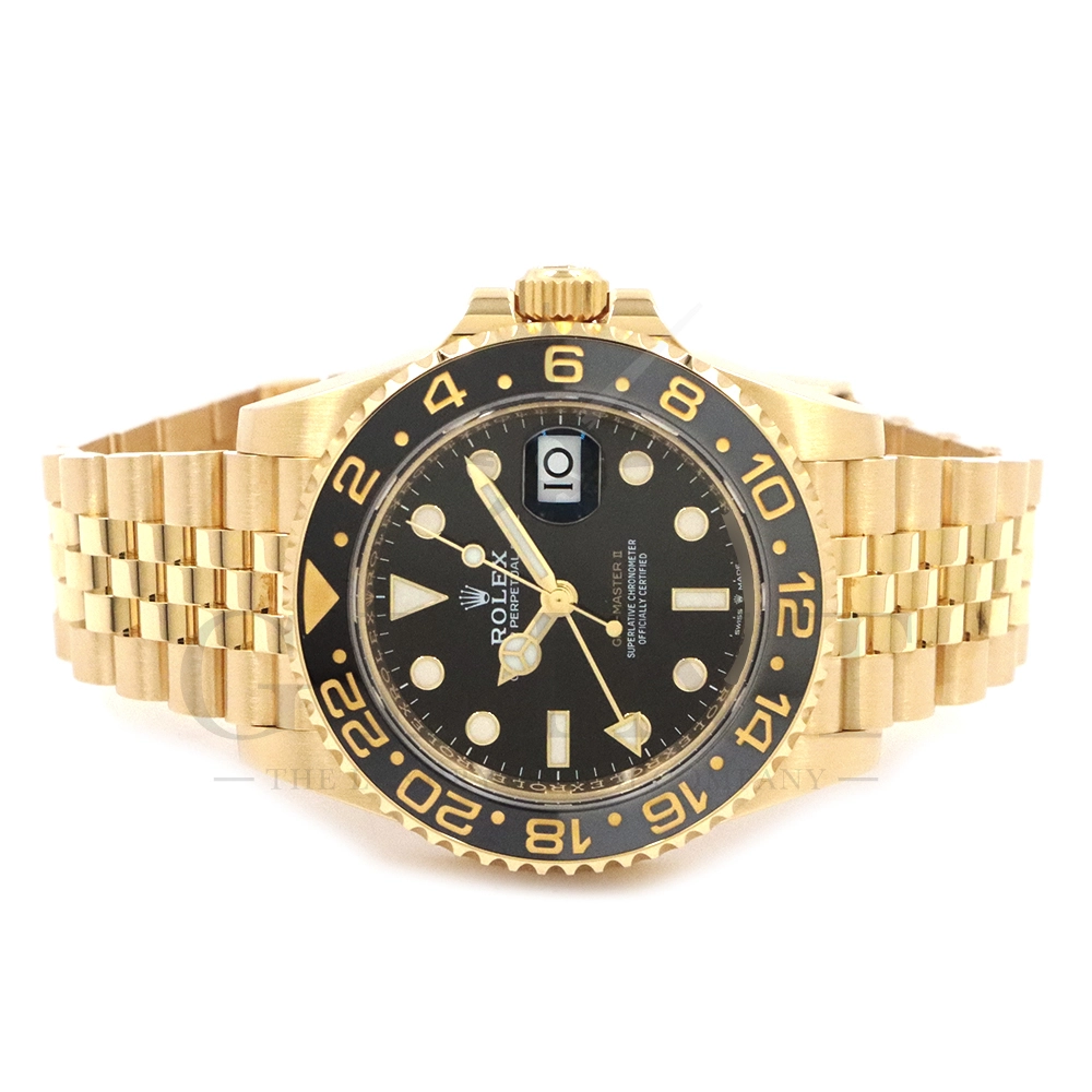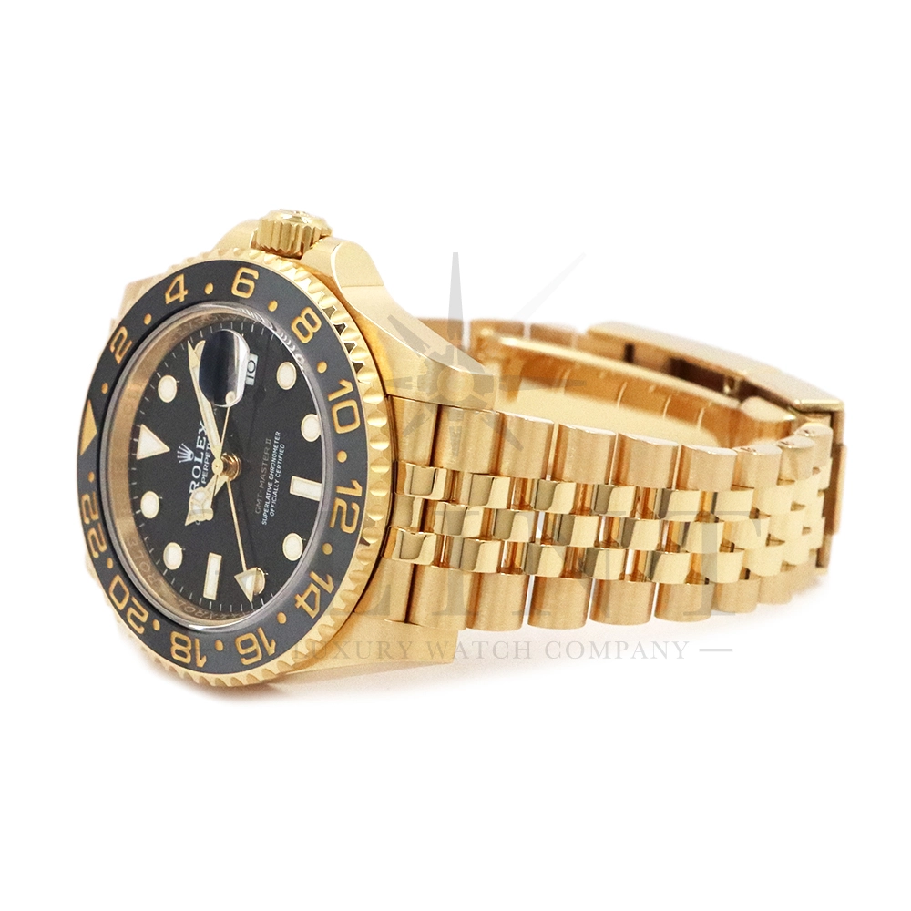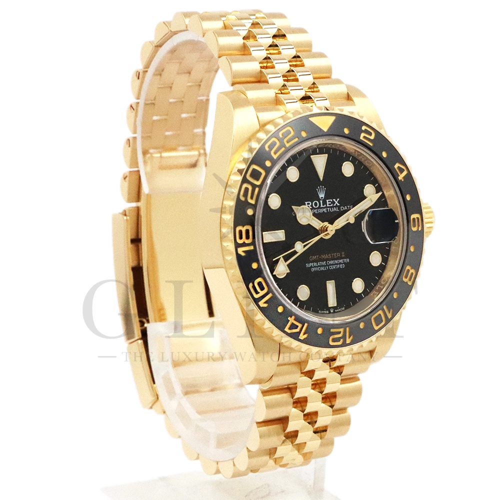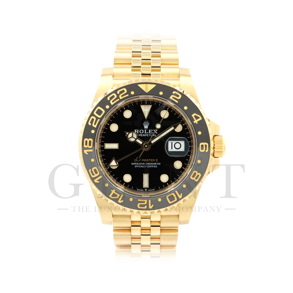 こちらは2023年の新作として発表されたロレックス GMTマスター2 126718GRNRです。ベゼルはグレーとブラックのツートンカラー、文字盤の24時間針には18ctイエローゴールドを採用。ケース素材と見事な相性で魅了します。ブレスレットには1945年にオイスターパーペチュアルデイトジャストの発売に合わせて特別にデザインされた5列リンクのジュビリーブレスレットを搭載し、しなやかで快適な装着感と特有の高級感を与えてくれます。搭載されているロレックスが独自に開発・製造したキャリバー3285はロレックスが特許を取得したクロナジーエスケープメントを採用し、高いエネルギー効率により70時間ものパワーリザーブを誇ります。ワンランク上のGMTマスターIIをお楽しみになりたい方にオススメの一本です。