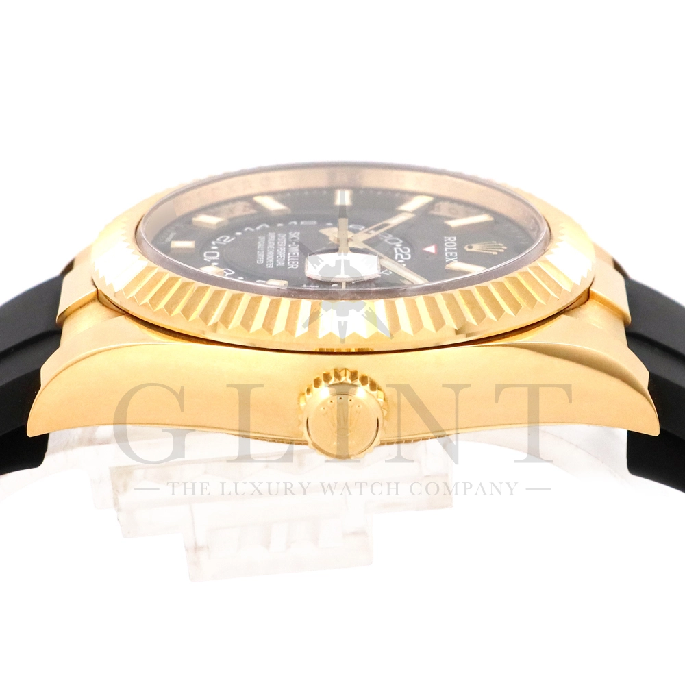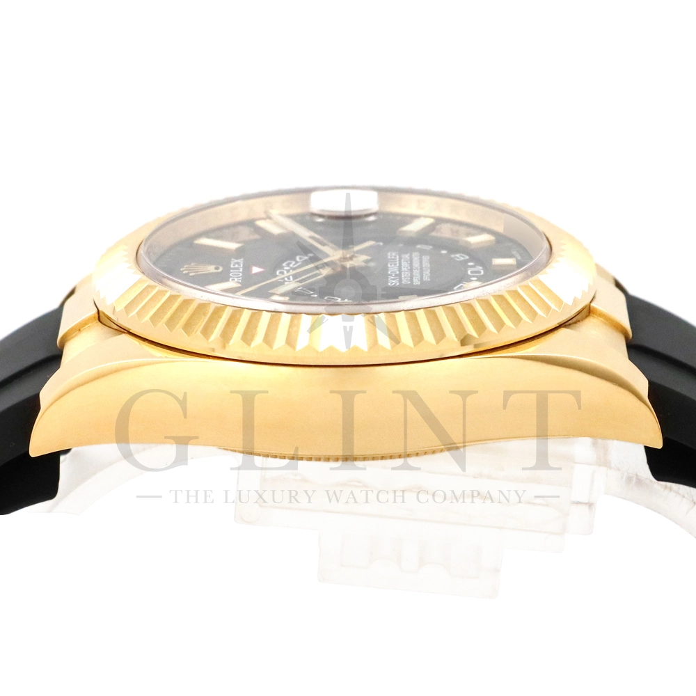 これまでレザーベルトで展開されておりましたが、新たにオイスターフレックスを採用。軟性のあるチタン・ニッケル合金製ブレードにしなやかで装着感に優れるエラストマー(人工ラバー)で覆っており、極めて高い耐久性を実現しております。水や雨も気にならず、普段使いとしても快適に楽しんで頂けるでしょう。ムーブメントにはROLEXが完全自社開発し、ROLEX初のセミコンプリケーションキャリバーとなるCal.9001を搭載しており、3月1日のみに手動調整するだけで1年間実用可能なアニュアルカレンダーとデュアルタイム表示を搭載。高級感と実用性を見事に融合させた至極の一本です。