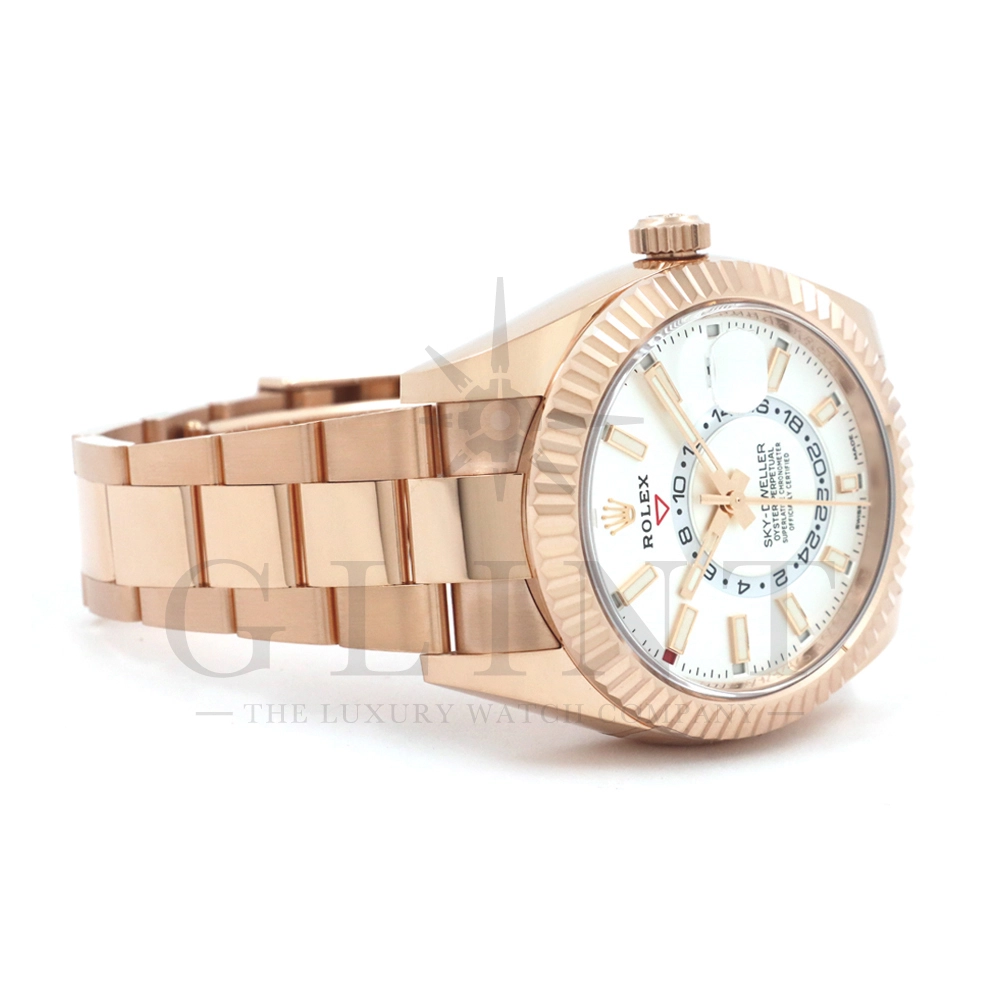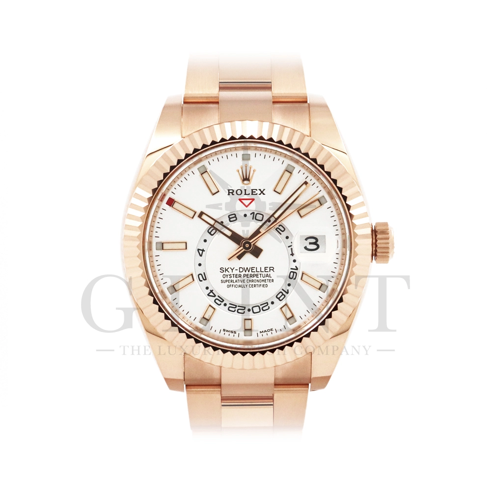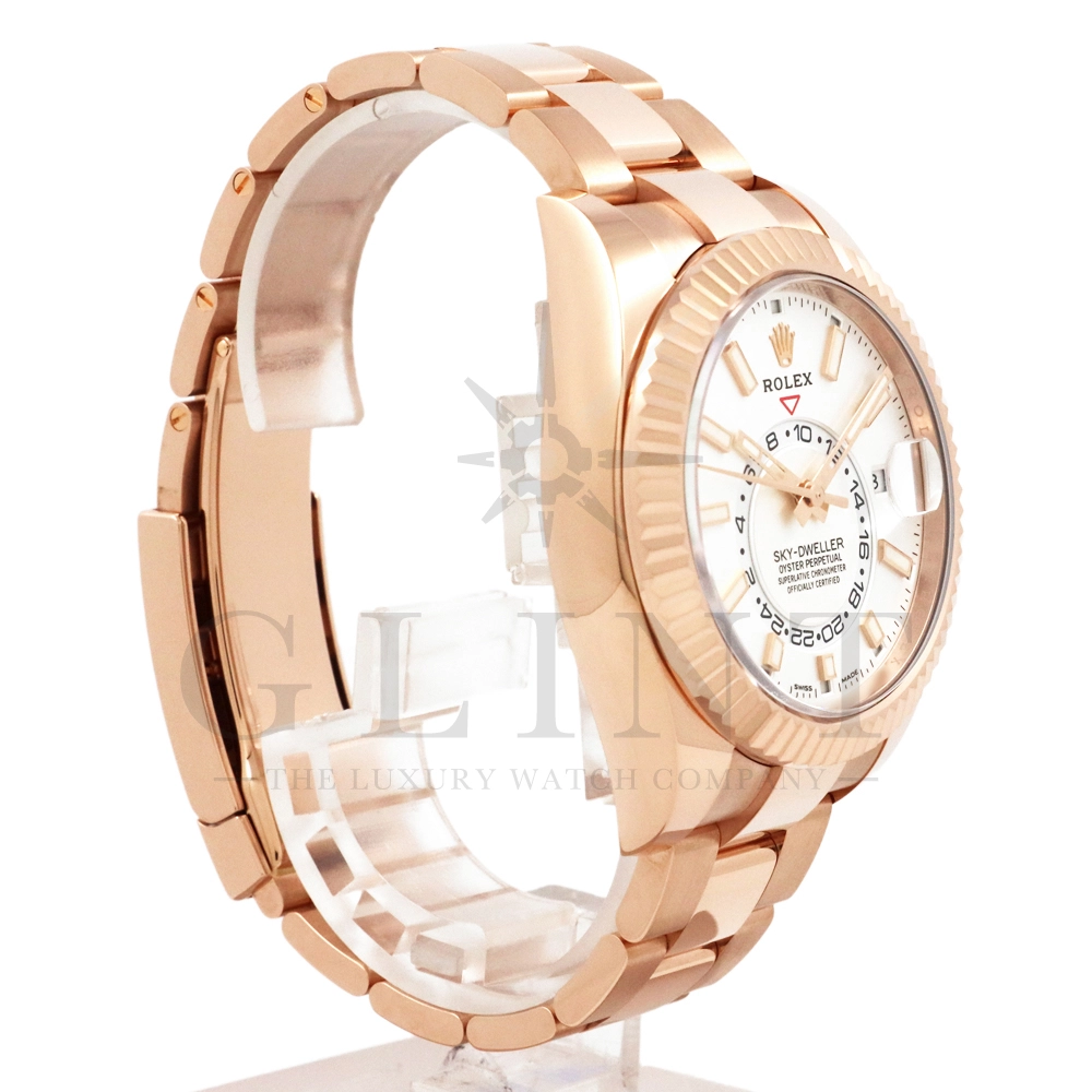 エバーローズゴールドとホワイトダイヤルの組み合わせが魅力的なスカイドゥエラーを入荷いたしました。店頭での現物確認やその他、詳細画像や動画などご必要の際はお気軽にお問い合わせください。