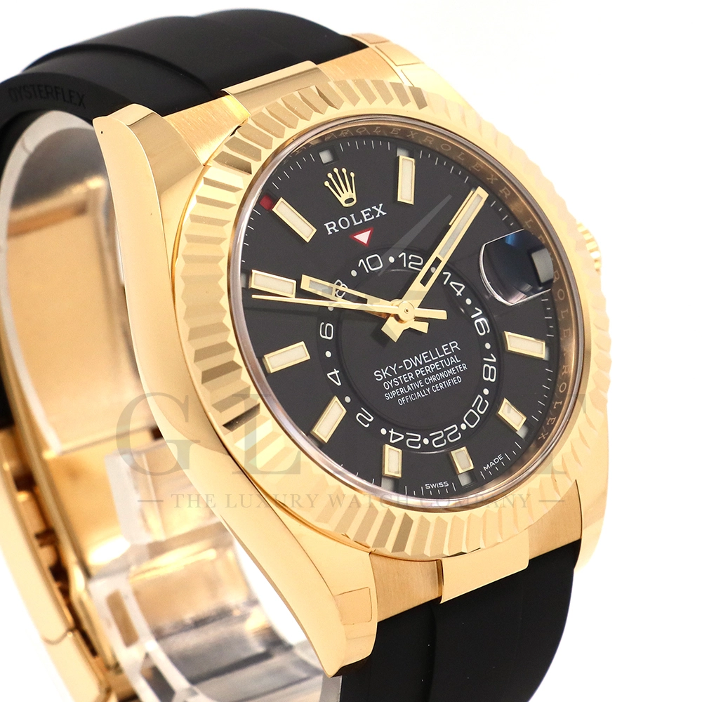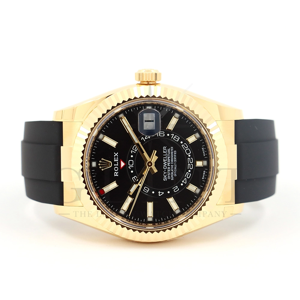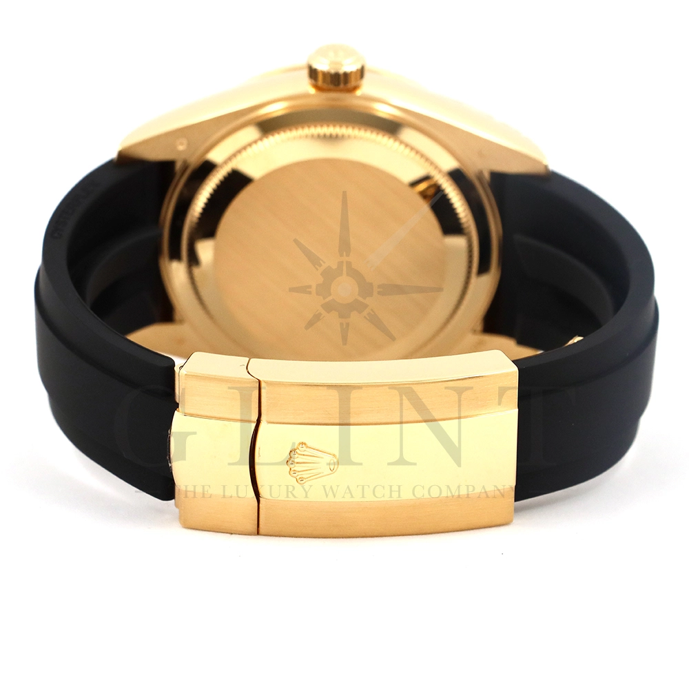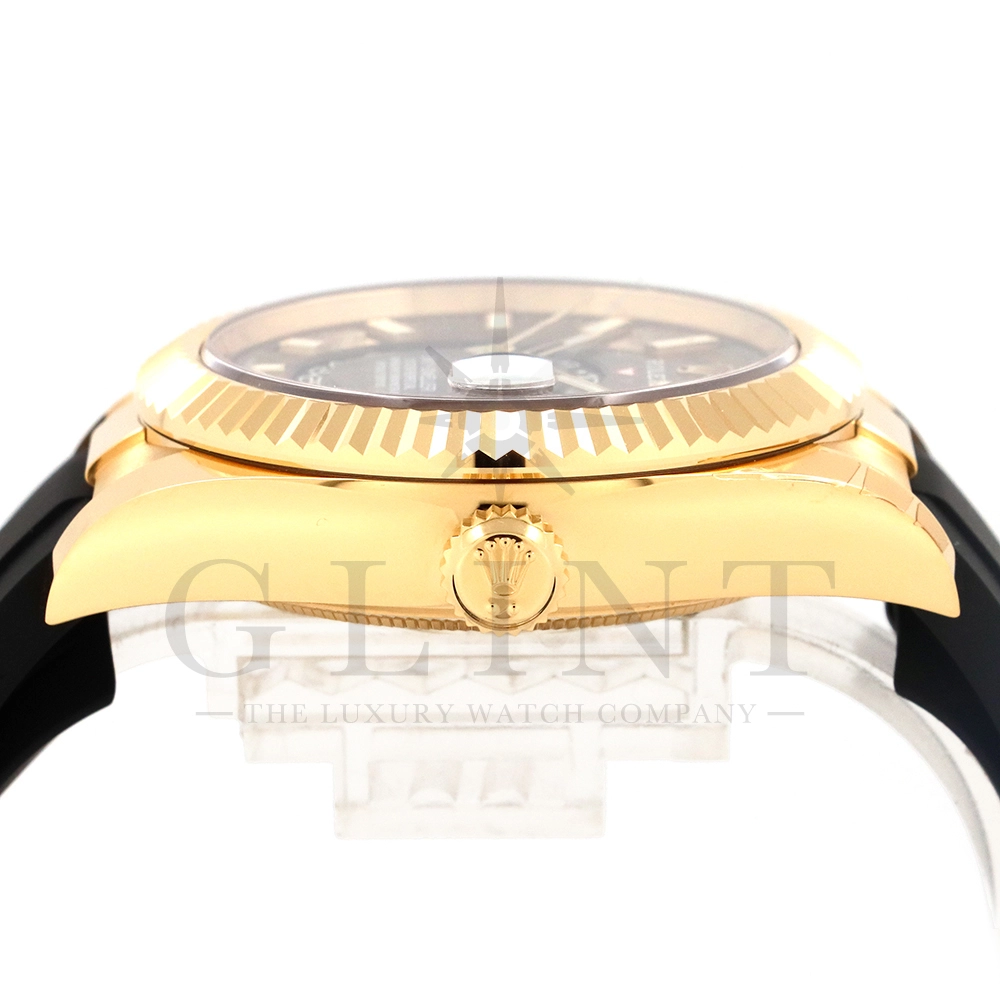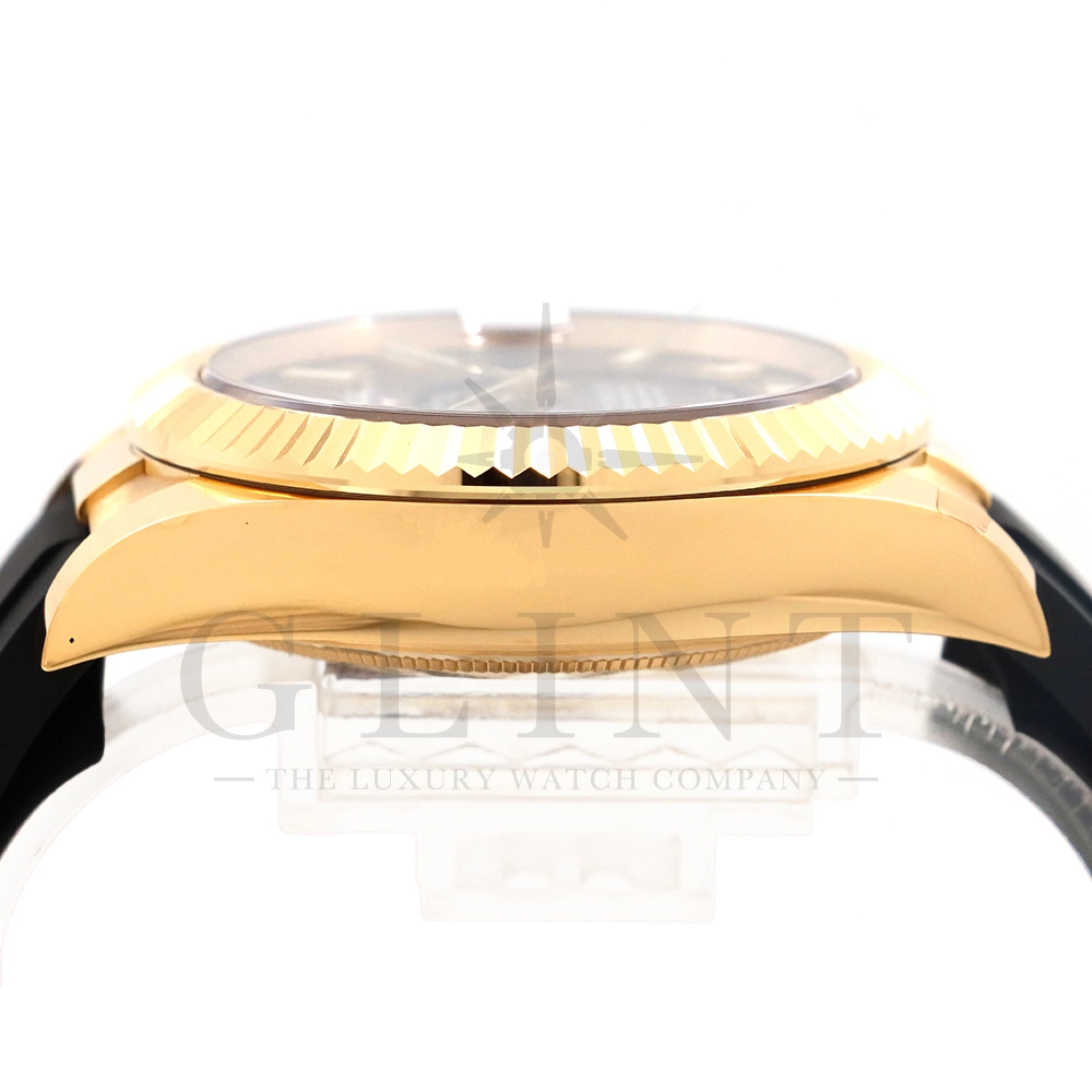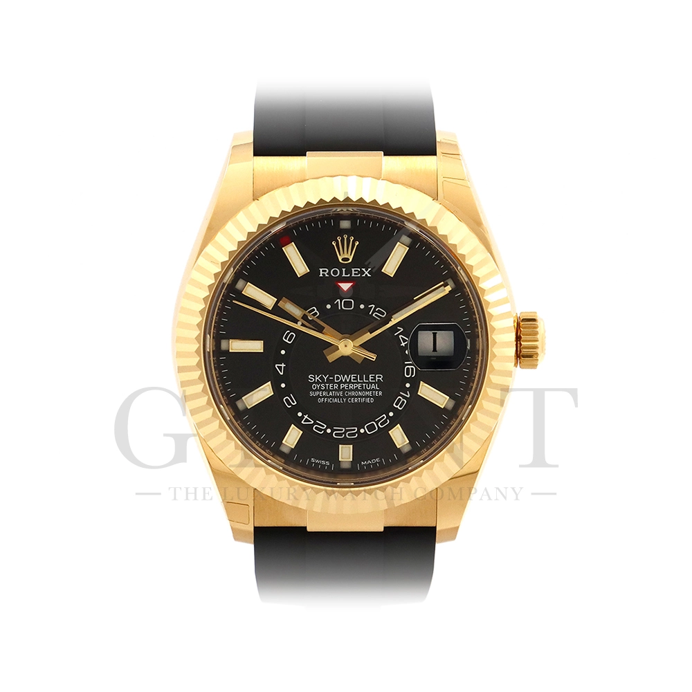 2020年の新作として登場したロレックス スカイドゥエラー オイスターフレックスモデルです。これまでレザーベルトで展開されておりましたが、新たにオイスターフレックスを採用。軟性のあるチタン・ニッケル合金製ブレードにしなやかで装着感に優れるエラストマー(人工ラバー)で覆っており、極めて高い耐久性を実現しております。水や雨も気にならず、普段使いとしても快適に楽しんで頂けるでしょう。ムーブメントにはROLEXが完全自社開発し、ROLEX初のセミコンプリケーションキャリバーとなるCal.9001を搭載しており、3月1日のみに手動調整するだけで1年間実用可能なアニュアルカレンダーとデュアルタイム表示を搭載。高級感と実用性を見事に融合させた至極の一本です。