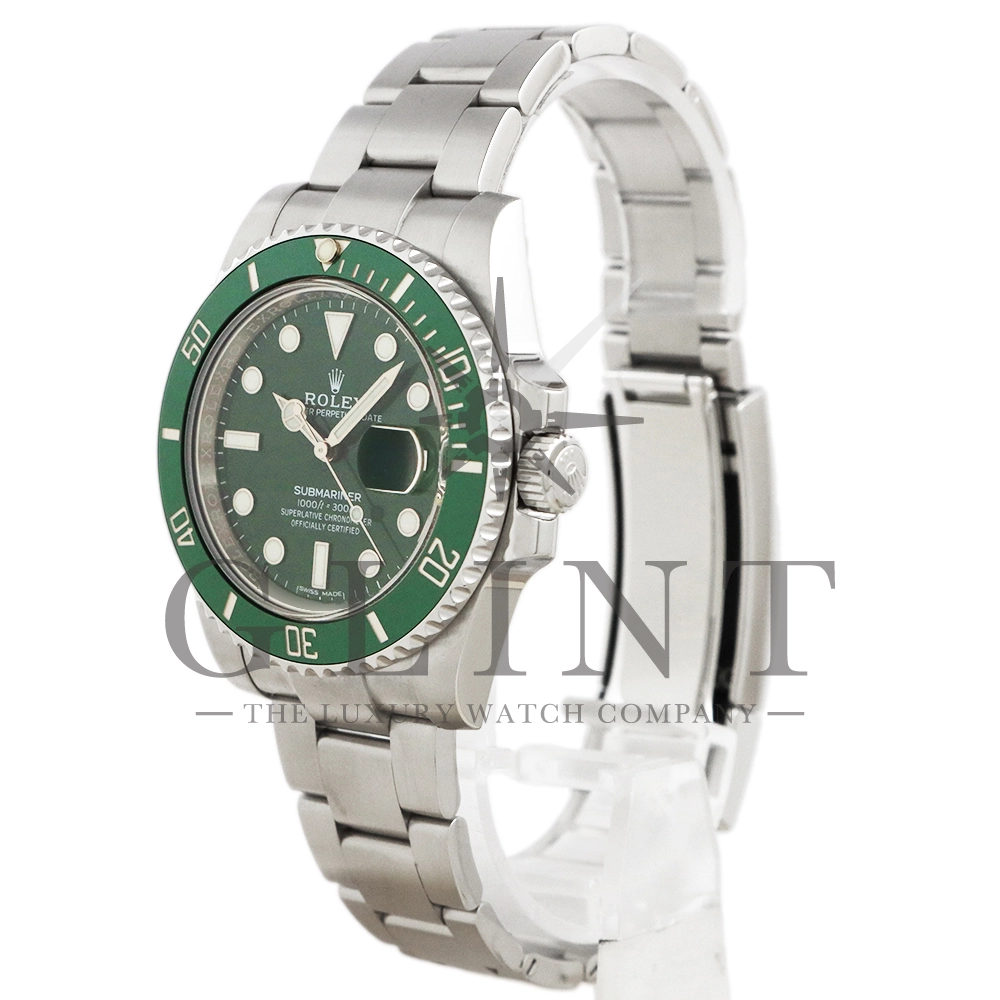 こちらはロレックス サブマリーナー デイトです。通称“グリーンサブ”と呼ばれる2003年にサブマリーナー誕生50周年を記念し発表されたRef.16610LVの次期モデルとして、デザインを受け継ぎながら、ダイヤルカラーをブラックからグリーンへ変更。耐蝕性と、耐傷性に優れたセラミックベゼルを搭載し、2010年に誕生しました。随所に新しい技術を取り入れ、高級感の溢れるデザインと耐久性で確固たる人気を誇ります。バックルはグライドロックバックルを採用しており、専用の工具が無くてもブレスレットの長さを容易に調節できるように。今もなお進化し続けるダイバーウオッチは必ずやユーザーの思いに応えてくれる最高の一本です。