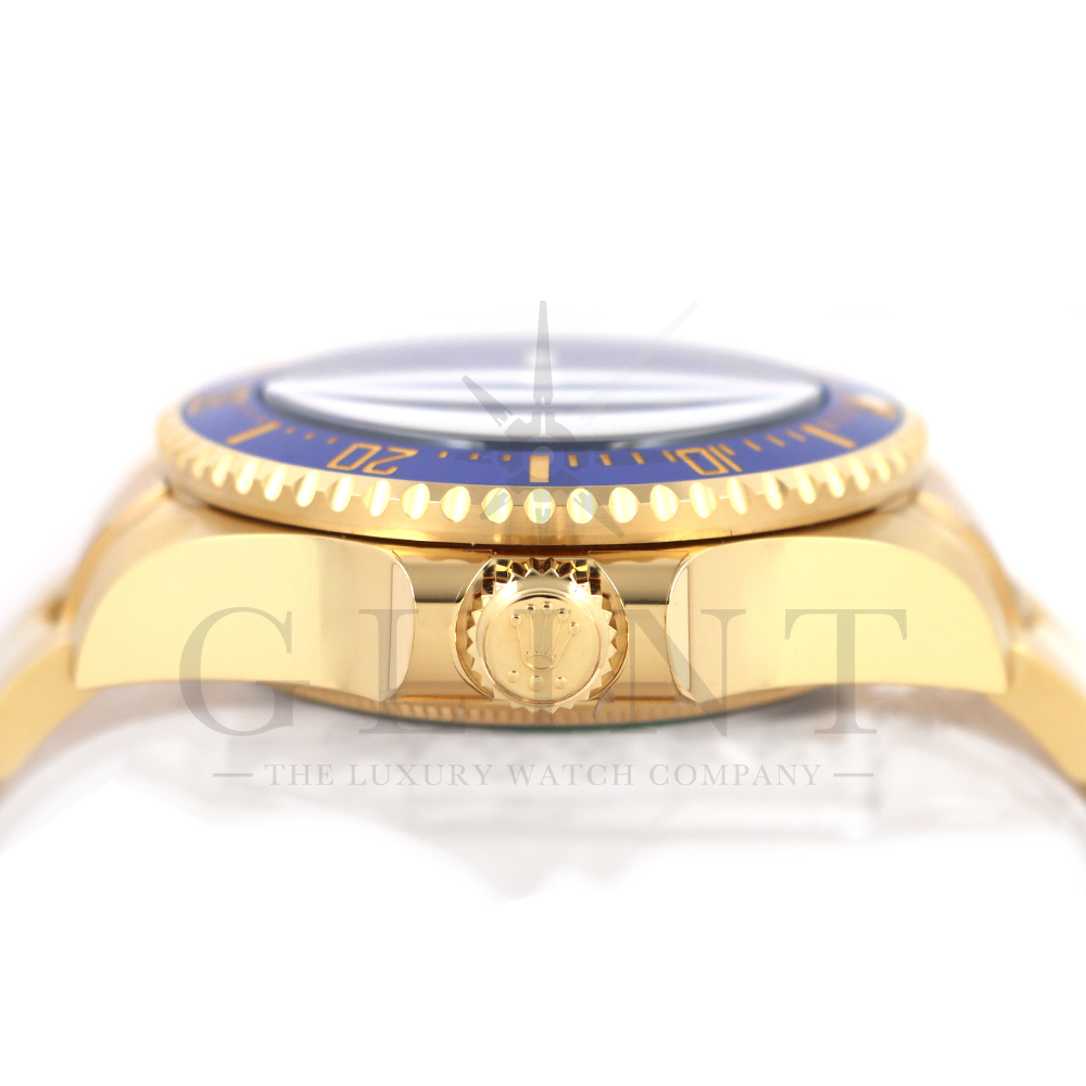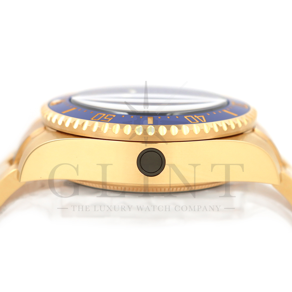 ベゼル:60分目盛り入り逆回転防止、耐傷性に優れたブルーのセラミック製セラクロムベゼルインサート、数字と目盛りはゴールドコーティング