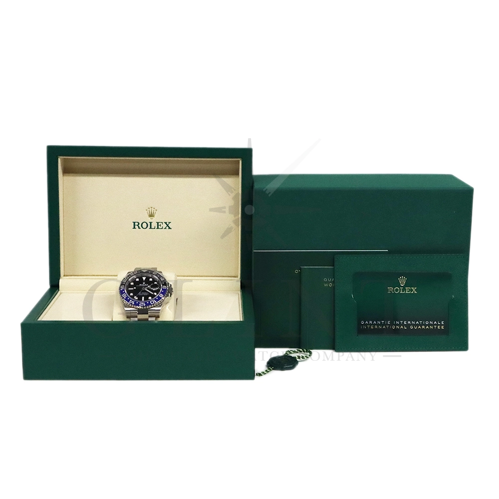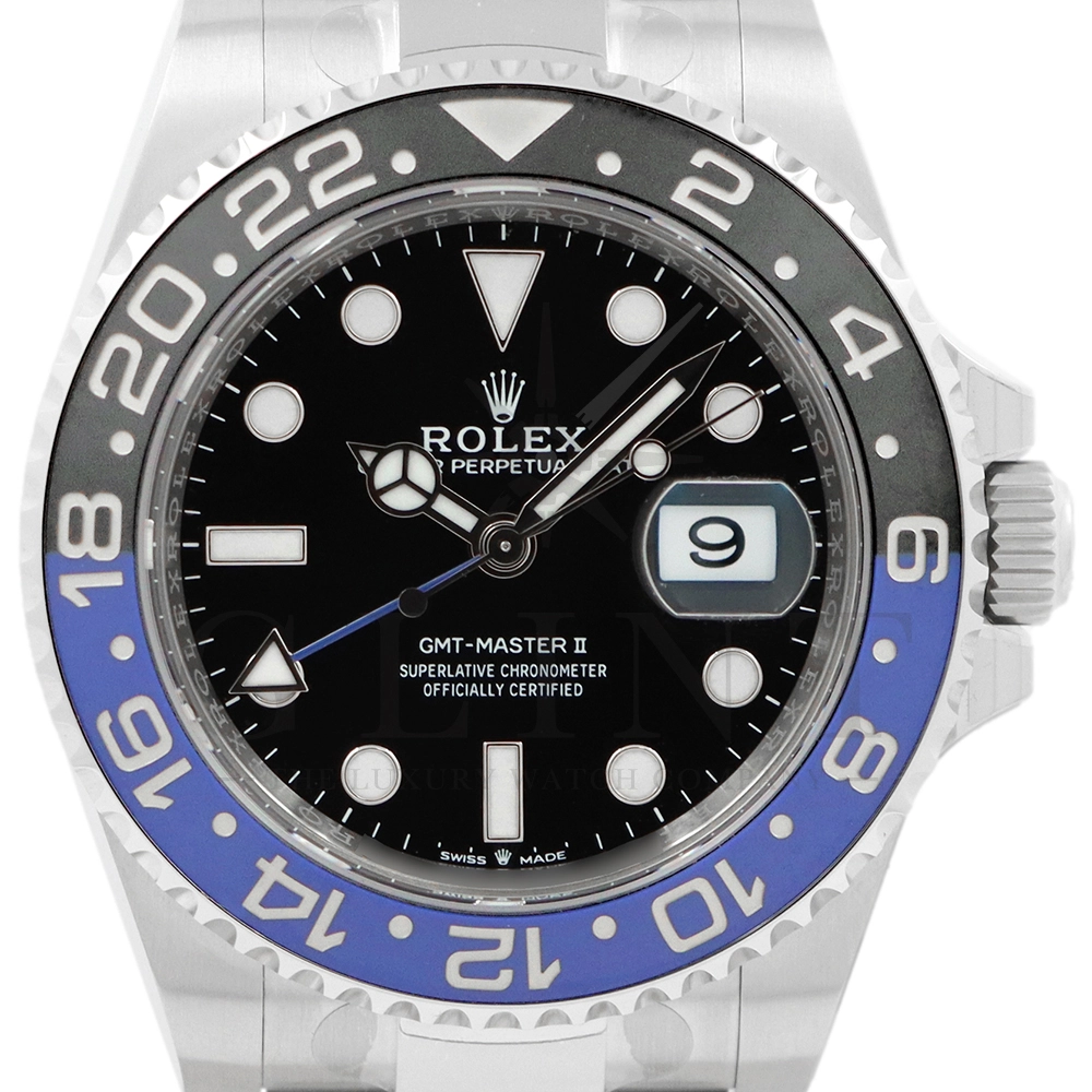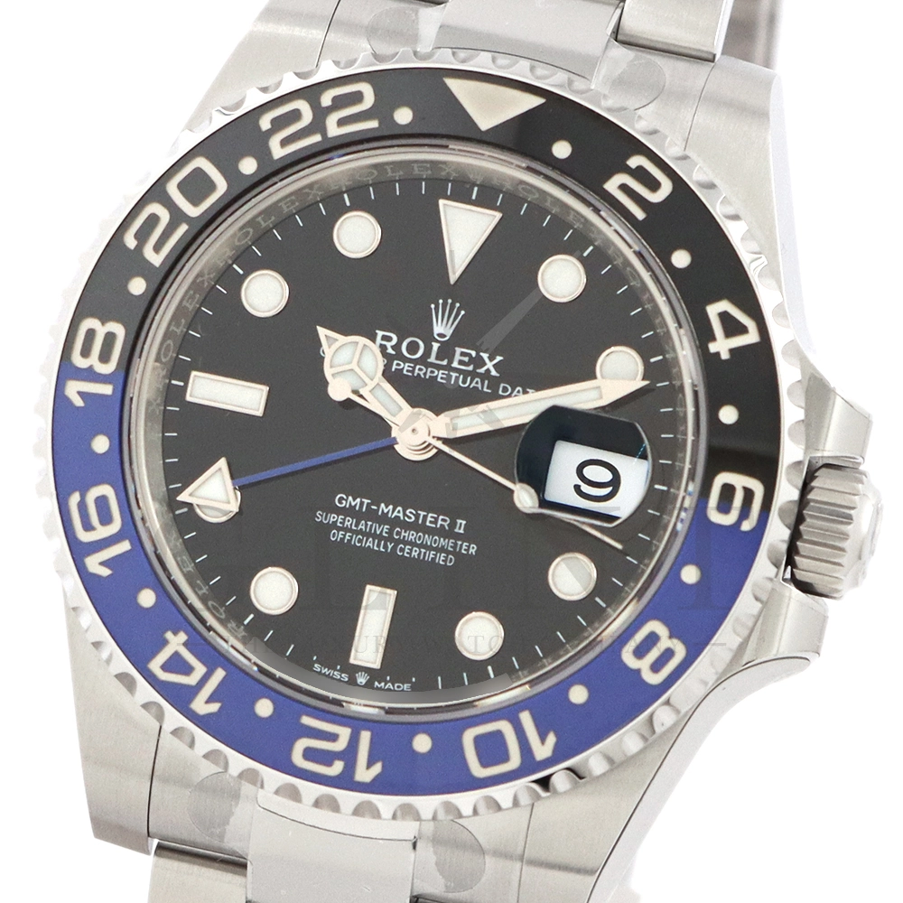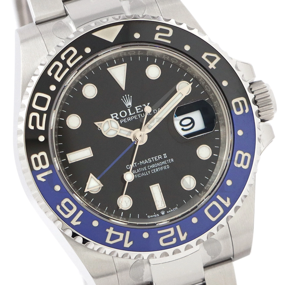 こちらはロレックス GMTマスター2 126710BLNR オイスターブレスレットモデルです。ファン待望のオイスターブレスレットが復活となり、ジュビリーブレスと2種類で展開されるようになりました。通称“バットマン”と呼ばれるブルーとブラックのツートンカラーのベゼルを搭載し、ムーブメントには次世代のGMTマスター2を担うCal.3285を使用。クロナジーエスケープメントを備え、香箱の構造を一新された事で、パワーリザーブが従来の48時間から70時間にグレードアップしており、実用性が高められました。更に進化したROLEX人気モデルで腕元をオシャレに演出してみてはいかがでしょうか。