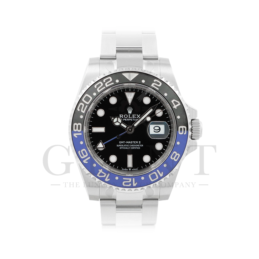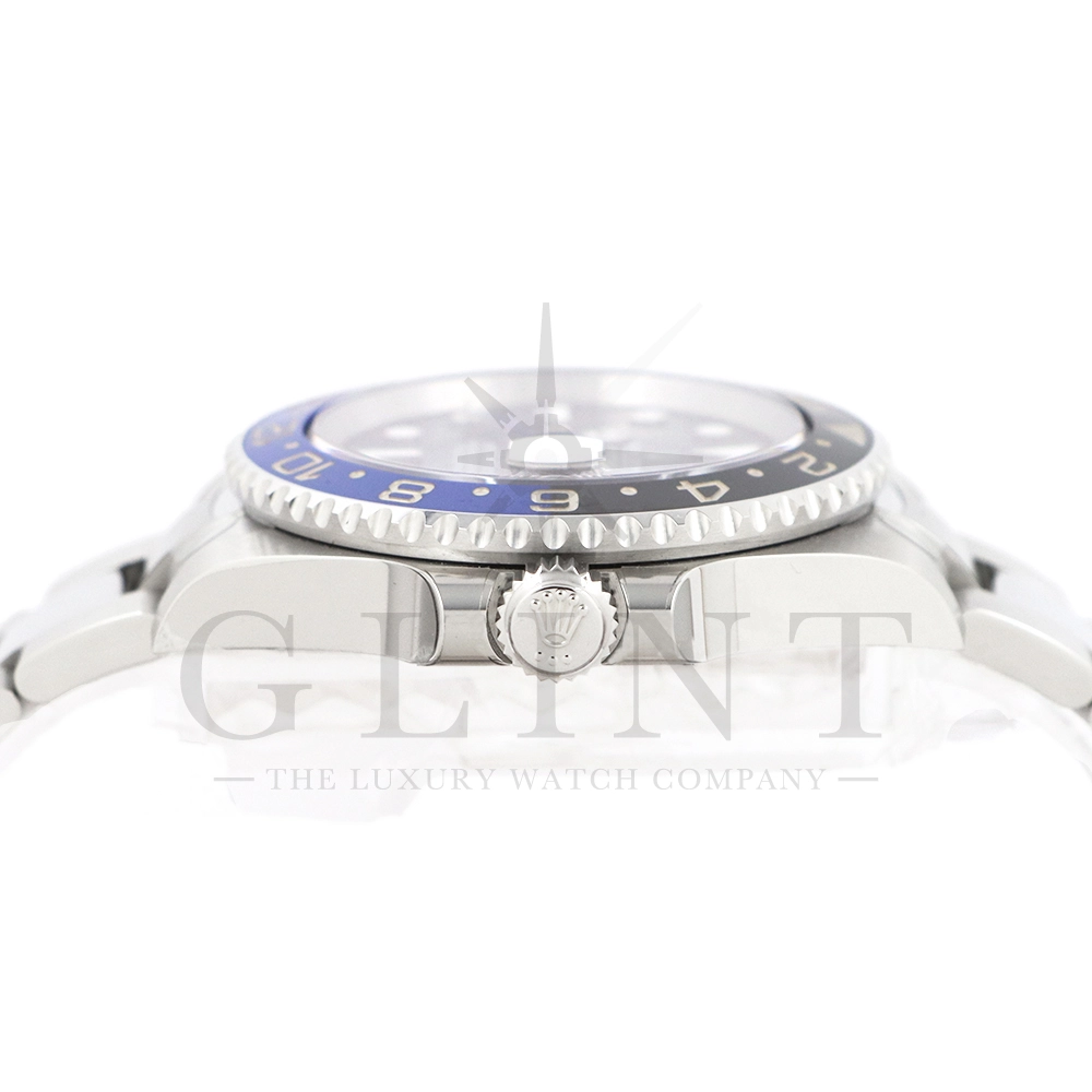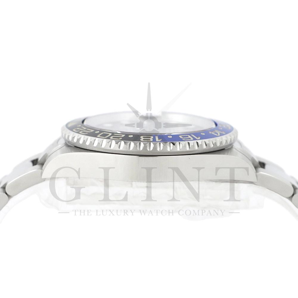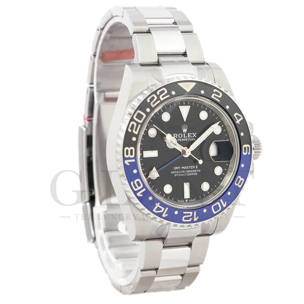 こちらはロレックス GMTマスター2 126710BLNR オイスターブレスレットモデルです。ファン待望のオイスターブレスレットが復活となり、ジュビリーブレスと2種類で展開されるようになりました。通称“バットマン”と呼ばれるブルーとブラックのツートンカラーのベゼルを搭載し、ムーブメントには次世代のGMTマスター2を担うCal.3285を使用。クロナジーエスケープメントを備え、香箱の構造を一新された事で、パワーリザーブが従来の48時間から70時間にグレードアップしており、実用性が高められました。更に進化したROLEX人気モデルで腕元をオシャレに演出してみてはいかがでしょうか。