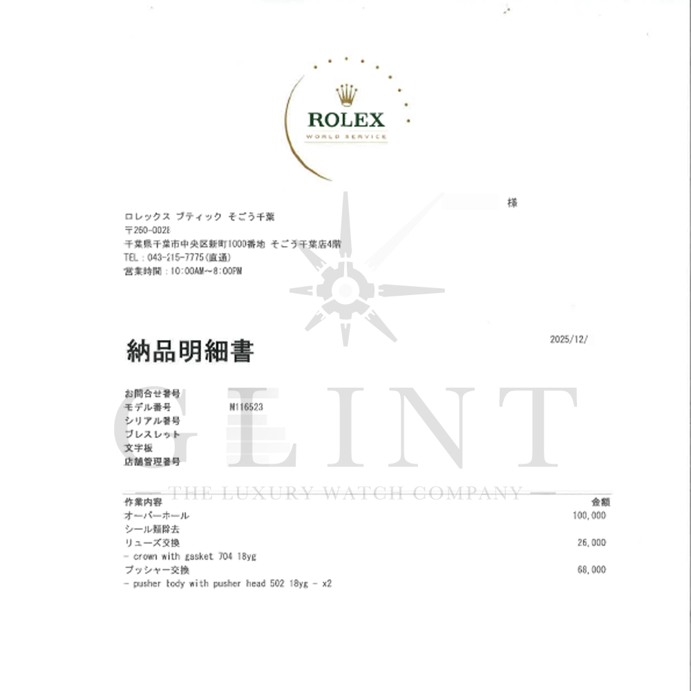 2025年12月日本ロレックスにてオーバーホール済み。ライトポリッシュで取り切れなかったであろう打痕はございますが、全体的に良好なコンディションです。